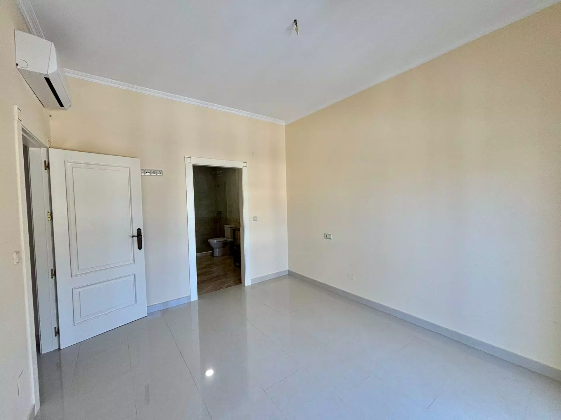 The interior is equipped with underfloor heating in all bathrooms, ensuring comfortable temperatures year-round. Full air conditioning throughout the home helps maintain a pleasant atmosphere during warmer months. The flooring consists of stylish ceramo granite, providing durability and an upscale look.