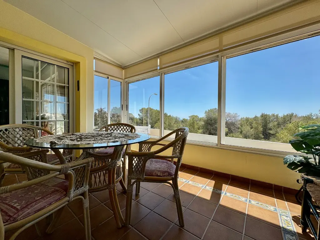 For sale is an independent chalet located in the Urbanization Rioja-Villamartin. This property is conveniently situated near golf courses and only 7 kilometers from the beaches of Orihuela Costa. The home faces south, allowing for ample natural light throughout the day, and is set on a private plot measuring 345 square meters that includes a pool and various garden areas.