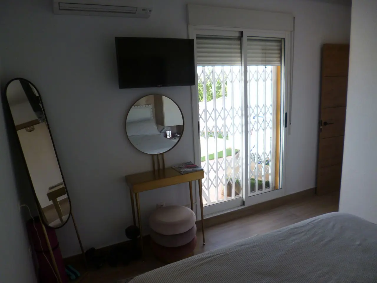 A lovely modern 4 bedroom 2 bathroom Villa with its own private pool. The property has been modernised to a high standard and is perfect for holidays or permanent living. A high wall and electric gates keep the 350m2 garden private. The garden is tiled for low maintenance with storage sheds to the rear, a gazebo and outside seating to rear by pump house, a sun terrace and dining table to the front, security front door and grills. On the inside the kitchen is a large modern fitted open plan style, and leads to the living room. There is a ground floor bathroom has a walk in shower. The two ground floor bedrooms have fitted wardrobes, one has a double bed the other two singles beds. There is a storage cupboard in the living room and another under the stairs. On the first floor are two more bedrooms, both having doors to the solarium sun balcony and en-suite shower room. The property also benefits from air conditioning and ceiling fans. The property is a 5 minute drive to the blue flag white sandy beaches or several championship golf courses.