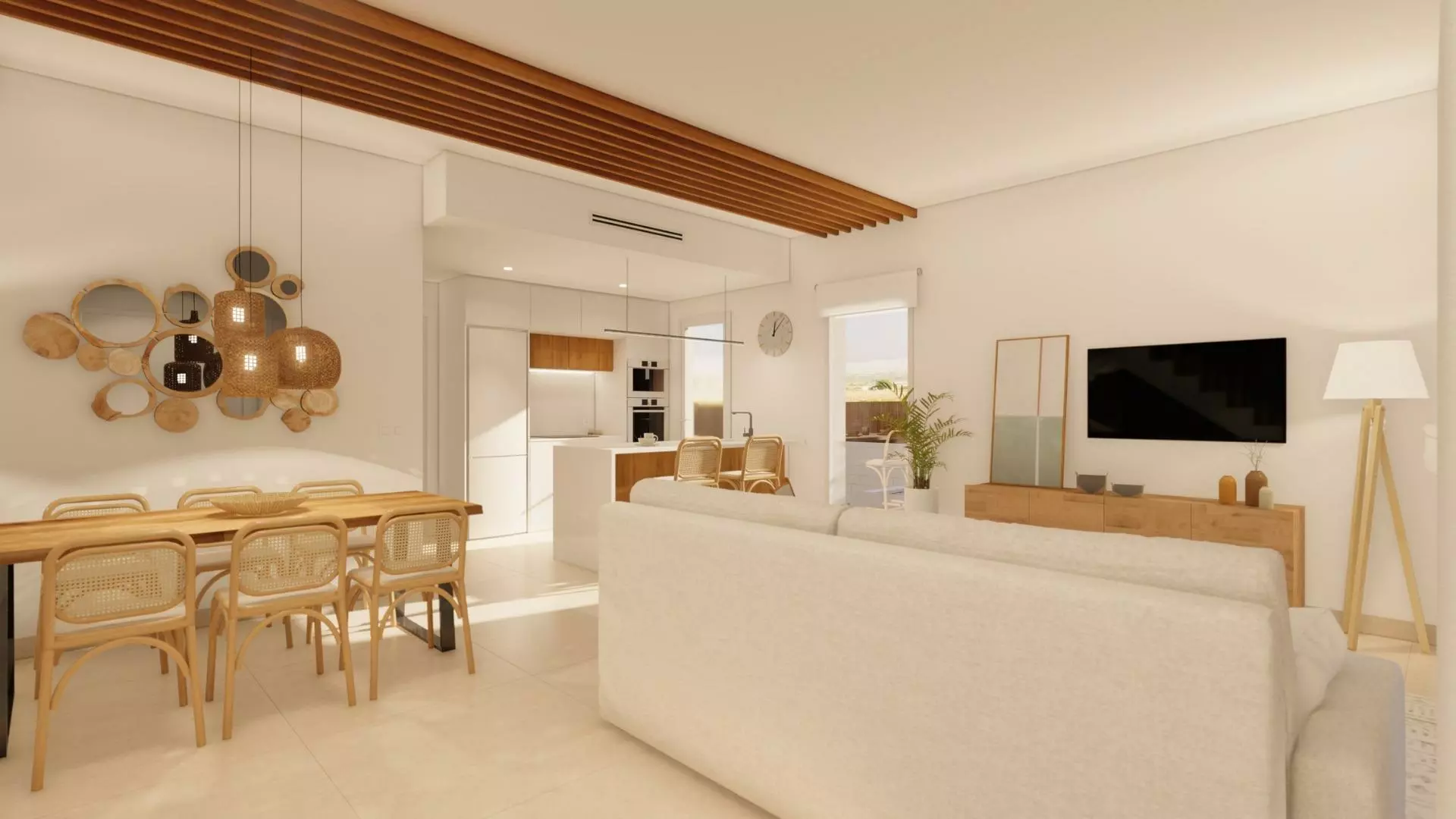 Explore the new build villas now available in Pilar de la Horadada. These properties are designed with functionality in mind, featuring 3 bedrooms and 3 en suite bathrooms. The villas boast a large open-plan living room that seamlessly integrates with the kitchen, all spread over two levels.
