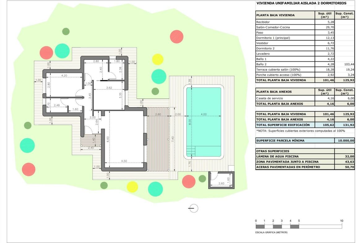 These villas present various models with options for 2, 3, or 4 bedrooms alongside 2 bathrooms, one of which is en suite. All designs are configured on a single floor to maximize comfort. The final pricing varies depending on the selected design, the construction system (whether slab or structure), and the chosen plot. For example, one plot priced at €60,000 has been considered for this advertisement. If a different plot is selected, any price differences will need to be settled accordingly.