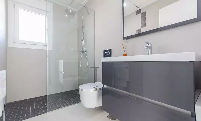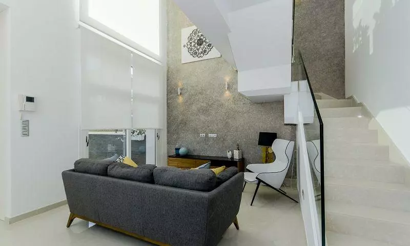 This detached villa features three bedrooms and three bathrooms, providing ample space for residents. The property is positioned with a southern orientation, allowing for favorable sunlight exposure throughout the day. The ground floor boasts a 12 square meters porch or pergola, while the rooftop includes a 45 square meters solarium, perfect for outdoor activities.