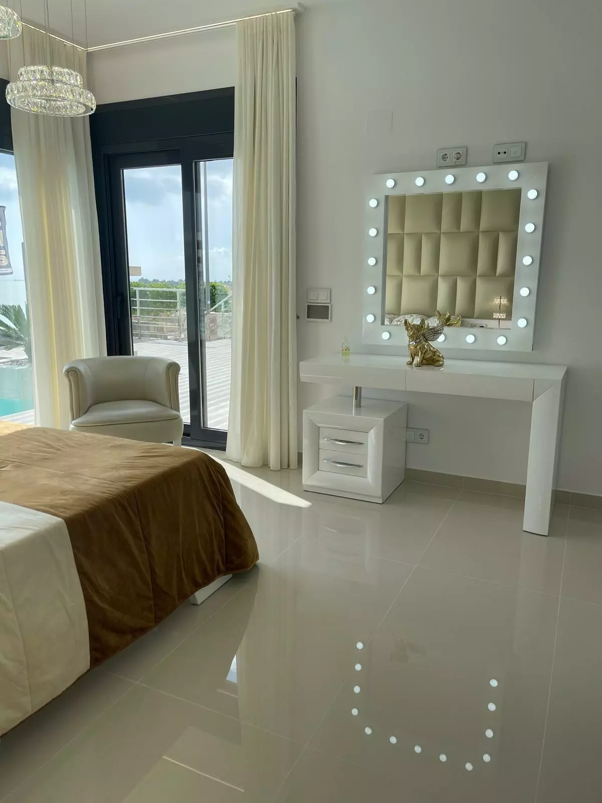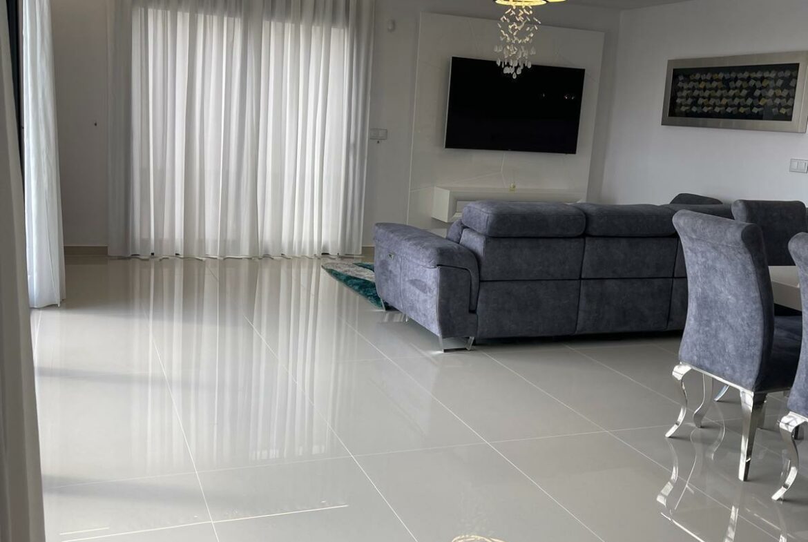 The villa features five well-sized bedrooms, providing ample space for families or guests. The four bathrooms include essential fixtures and fittings to cater to daily needs. The layout maximizes functionality, allowing for easy movement between rooms. Natural light enters through large windows, enhancing the overall ambiance of the home.