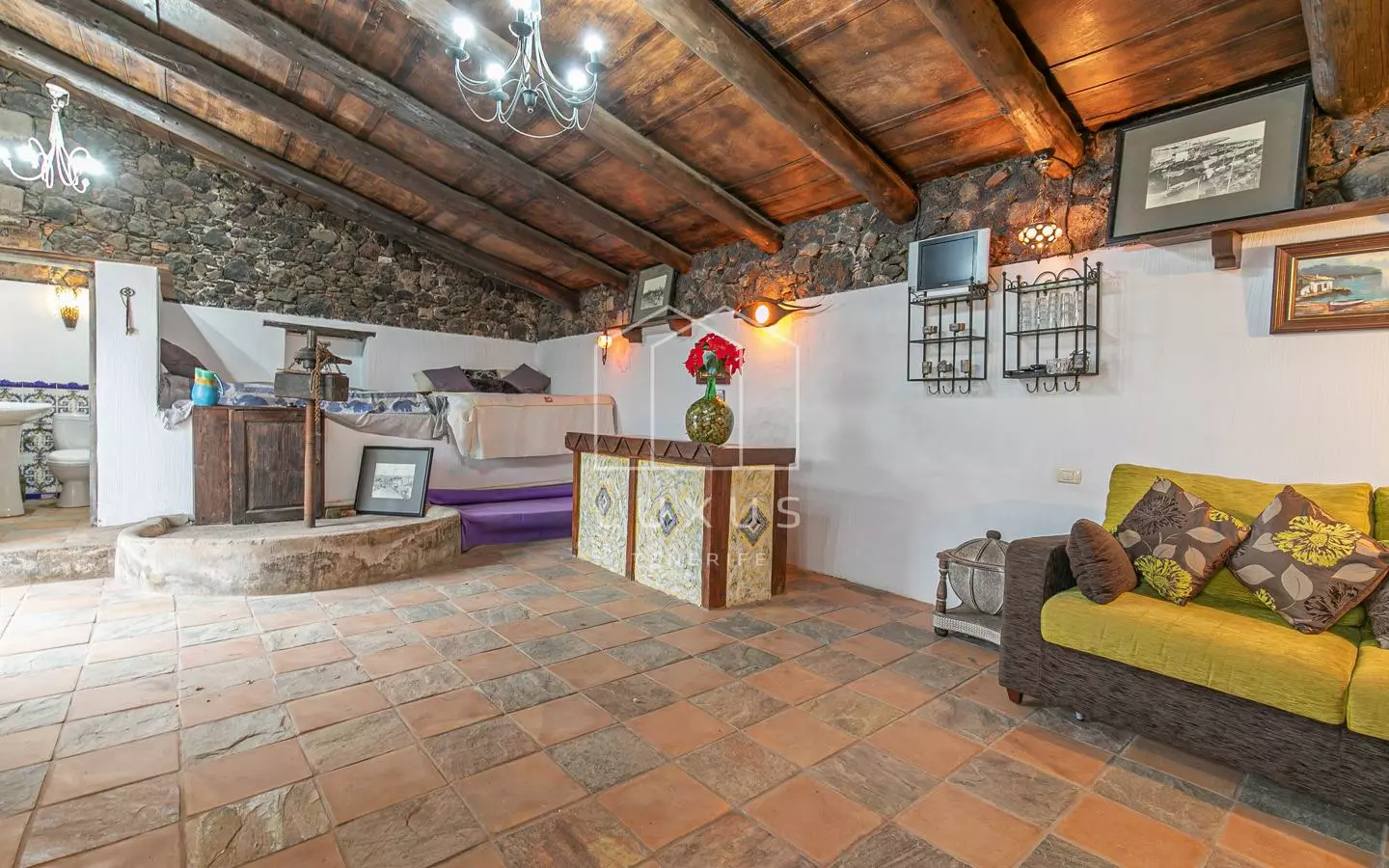 The extensive renovations of this property have preserved its historical integrity. Original stone walls are intact, adding a layer of authenticity to the design. The removal of false ceilings reveals the high wooden beams that are characteristic of Canarian architecture. These elements contribute to the property’s unique narrative while meeting modern standards.