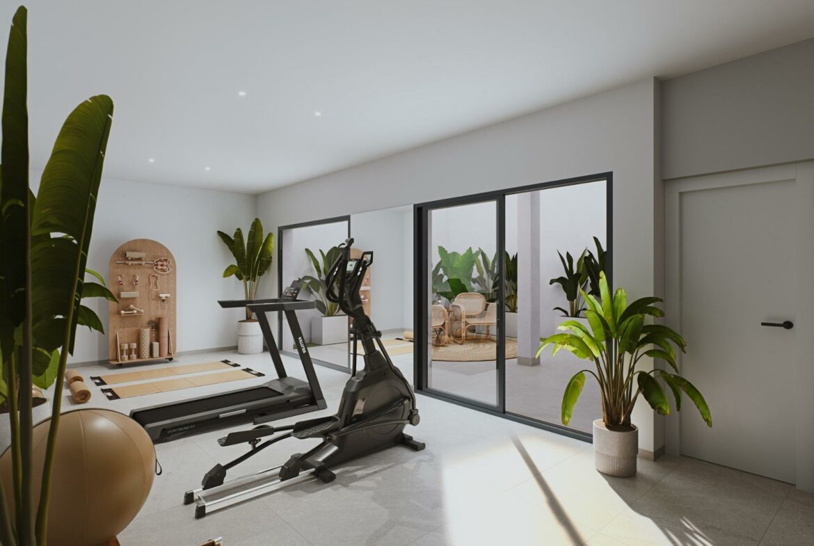 Each villa spans 220 m² of living space across three levels: a basement, two primary floors, and a rooftop solarium, all situated on 295 m² plots. The layout includes four bedrooms and four bathrooms, with three of those bathrooms being en suite. The design encourages both privacy and communal living. Outdoor features include a private pool with a jacuzzi area, large terraces for entertaining, and a rooftop solarium equipped with a summer kitchen and toilet. These elements allow for year-round enjoyment of the local climate.