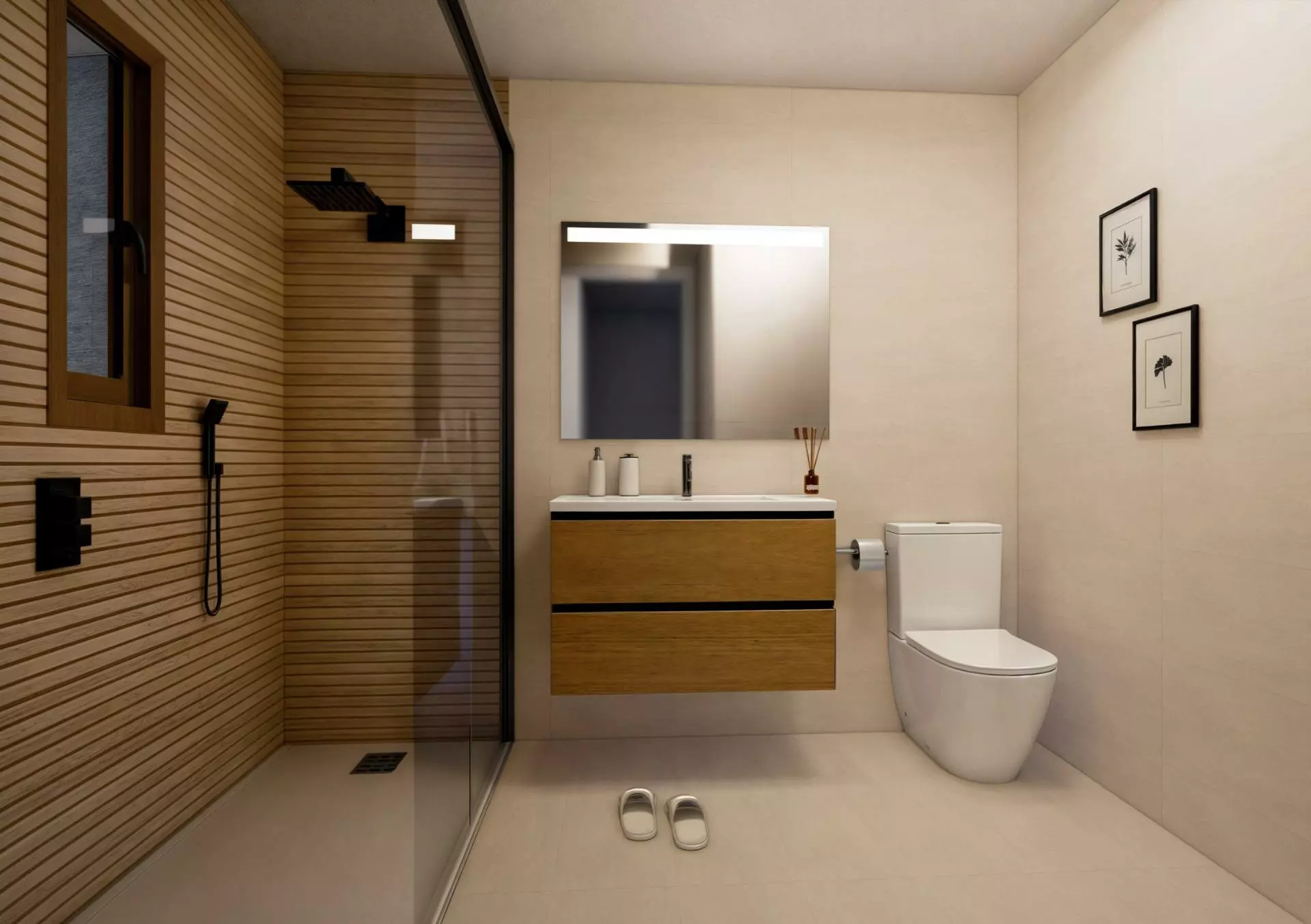 Other notable features are premium porcelain sanitary ware in bathrooms, fully equipped wardrobes with white lacquered doors, and energy-efficient LED lighting throughout both the interior and exterior.