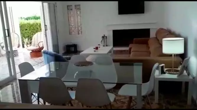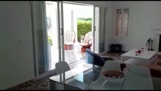 This villa offers a layout ideal for family vacations, featuring three bedrooms and two bathrooms. The living room connects seamlessly to the dining area, creating a functional space for gatherings. An open American kitchen enhances the flow of the house, making meal preparation and socializing easy.
