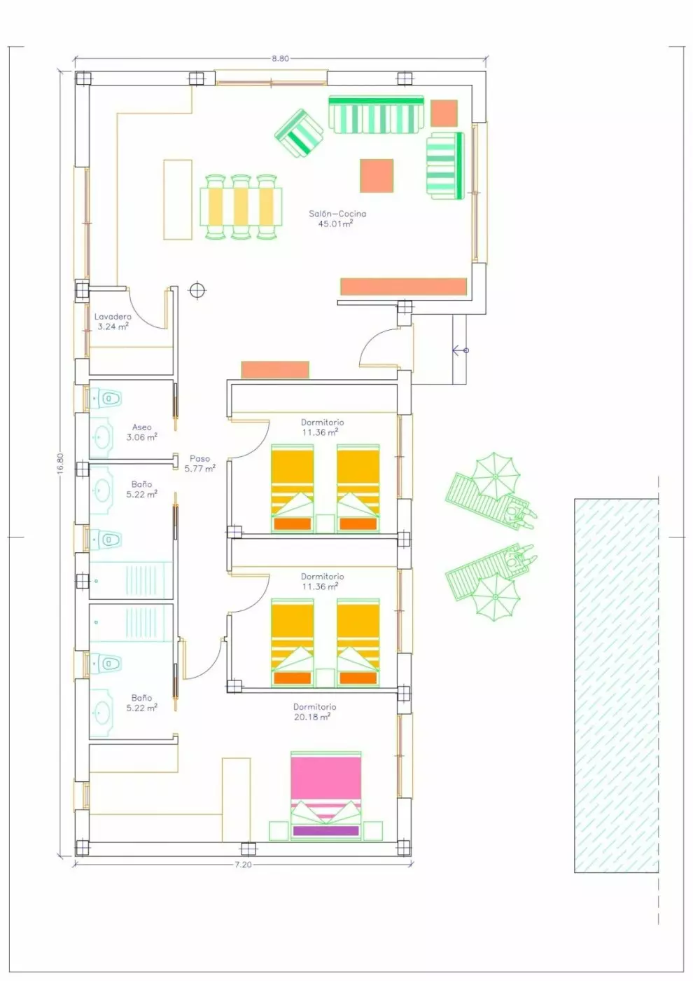 This project consists of six independent villas, each with their own private swimming pool. These properties have been thoughtfully designed to offer convenient living on a single level. With three bedrooms, including a master bedroom complete with a dressing room, these homes are built to accommodate various lifestyles.