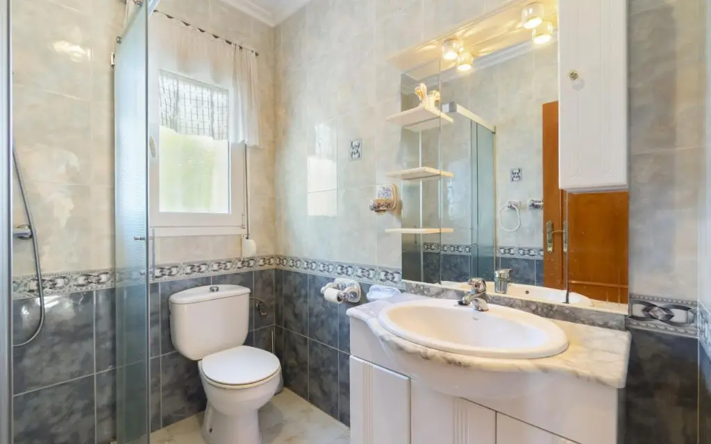 This villa boasts three bedrooms, with the third one conveniently connected to the roof terrace, which could serve as a guest area. There are also two bathrooms designed to accommodate daily routines efficiently.