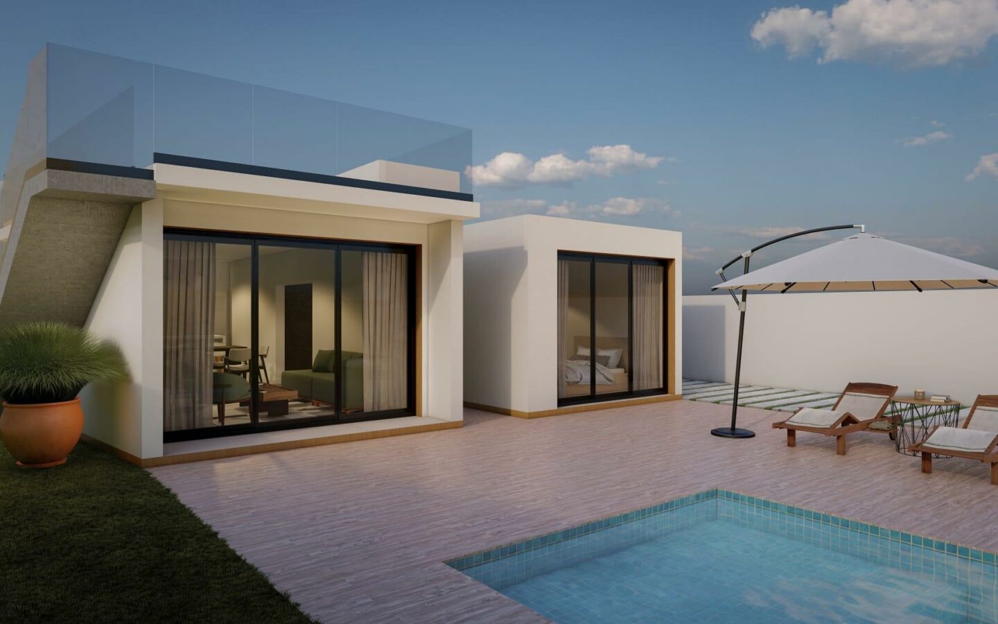 Explore this unique Ibizan-style villa, a single-story new-build property positioned on a generous 750 m² plot in Las Casicas, which is a hamlet in Fortuna, Murcia. This home is designed for those who value privacy and relaxation. It includes features such as a private swimming pool, solarium, and a fully equipped kitchen outfitted with modern appliances and cabinetry.