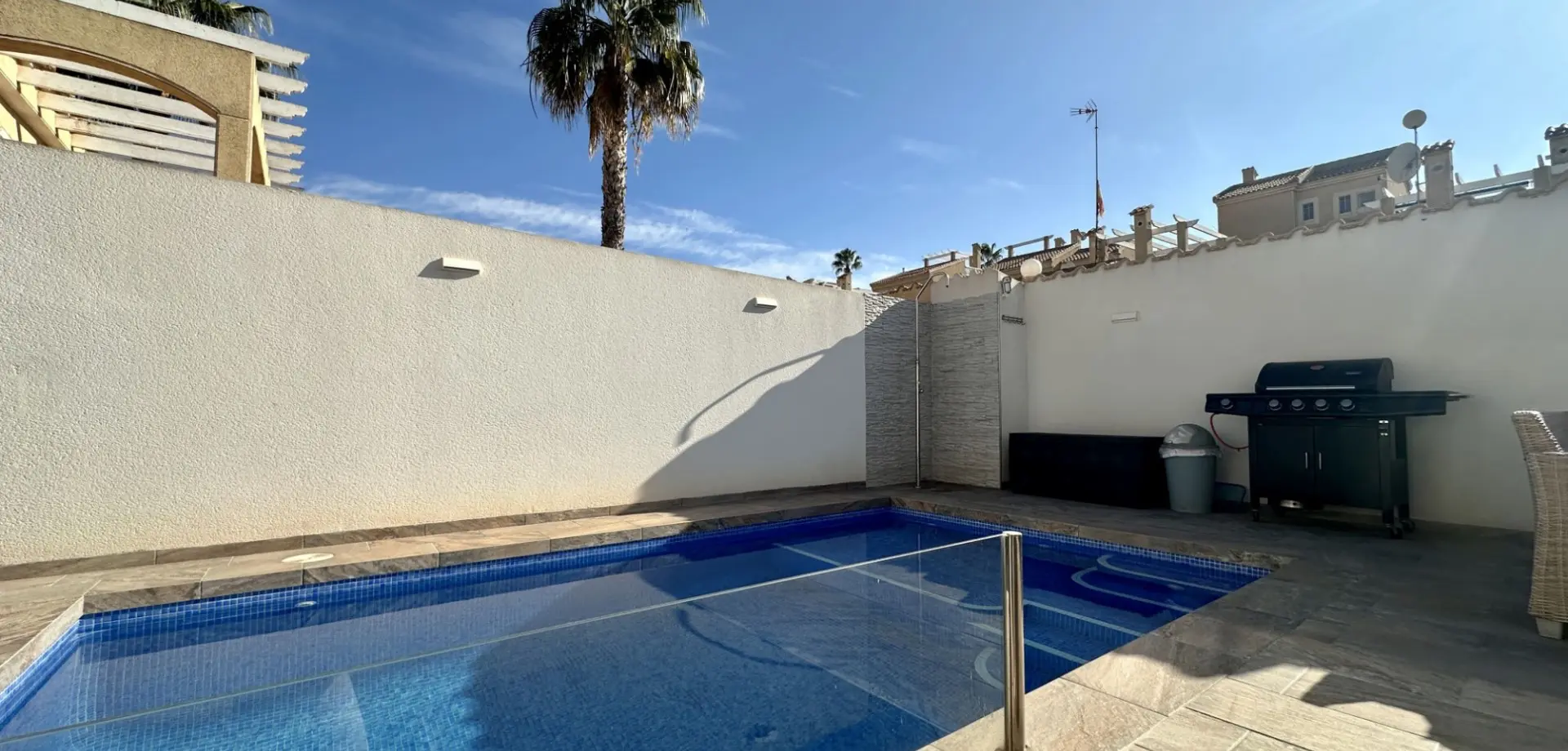 Explore this detached villa in the quiet residential area of Las Palmeras, Orihuela Costa. Nestled on a 300 m² plot, this property offers ample opportunities for families, vacationers, or those looking for permanent residence. The setting emphasizes space and privacy, making it a practical choice for various lifestyles.