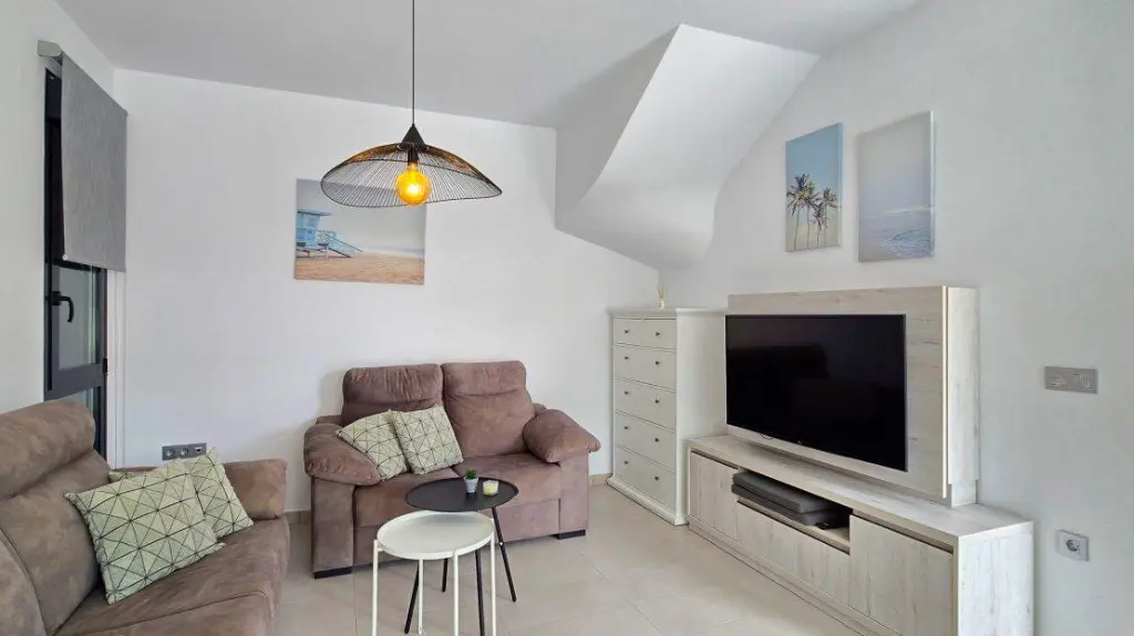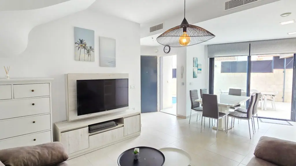 Check out this newly constructed villa for sale in Villamartin PAU 26. This property features three bedrooms and two bathrooms, offering ample space for various needs. The living and dining area is designed for functionality, complemented by a built-in kitchen that includes an electric hob, oven, and extractor fan. A large roof terrace provides views of the surrounding areas.