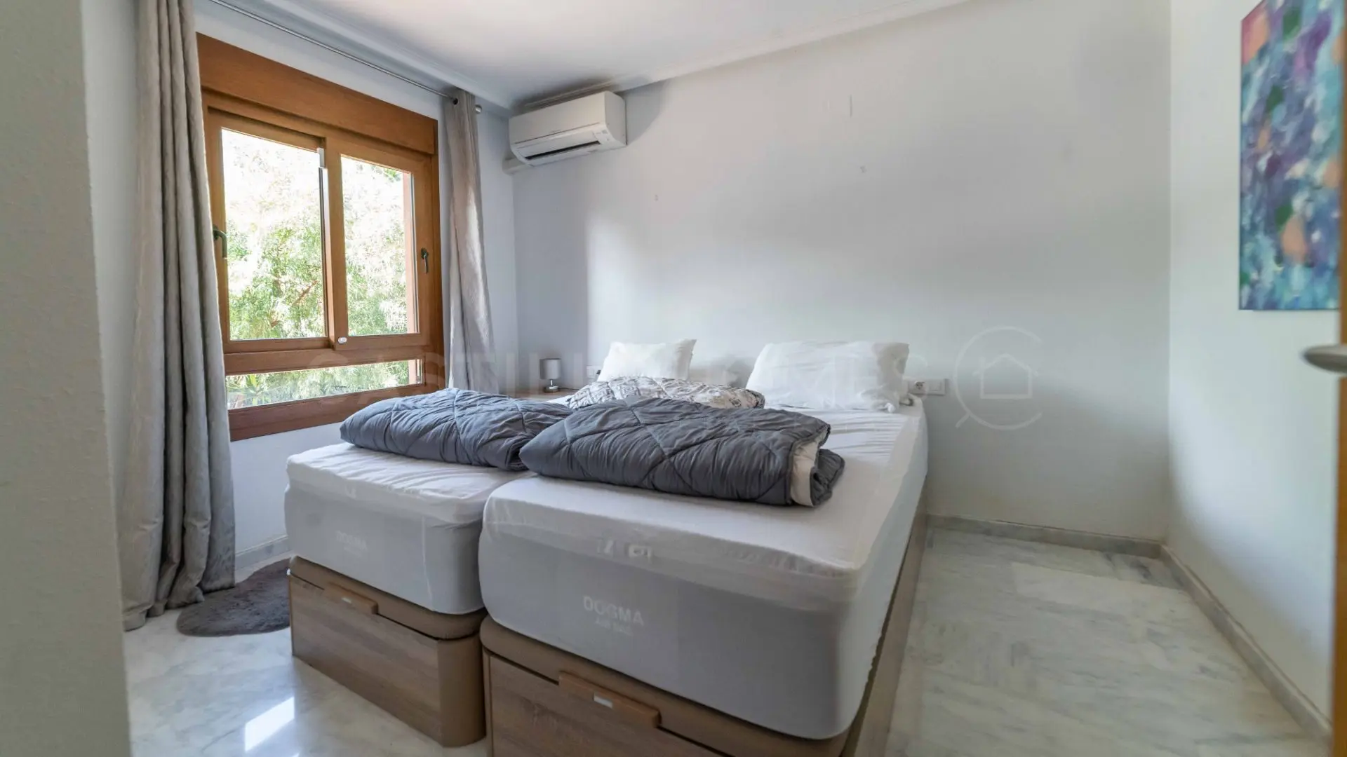 As you enter the villa, you’re met with a bright living room featuring large windows that allow natural light to fill the space. This area flows seamlessly into a modern open-plan kitchen, making it ideal for daily living. The entrance floor houses two bedrooms along with a bathroom, facilitating a functional layout.
