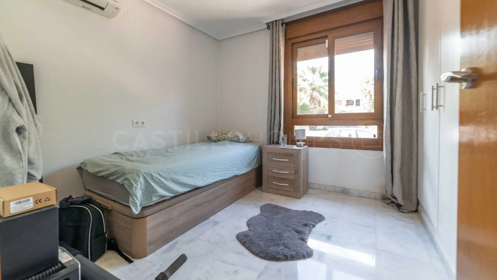 Welcome to an exceptional detached villa located in San Miguel de Salinas. This expansive 157 m² home is well-designed for larger families or those who frequently host guests. Nestled on a corner in a tranquil complex, the villa contains four bedrooms and four bathrooms, ensuring ample space for everyone.