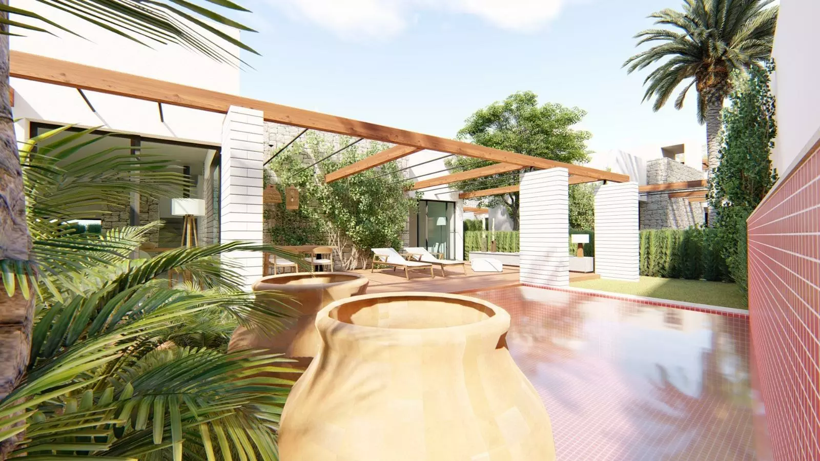Explore a unique collection of three newly constructed independent villas in Roldán, located in the sought-after El Alba Mediterranean Resort. Each villa is thoughtfully designed on a single level, ensuring both comfort and functionality. Buyers can choose between two or three bedrooms, with each option featuring two bathrooms, a private pool, and a rooftop solarium.