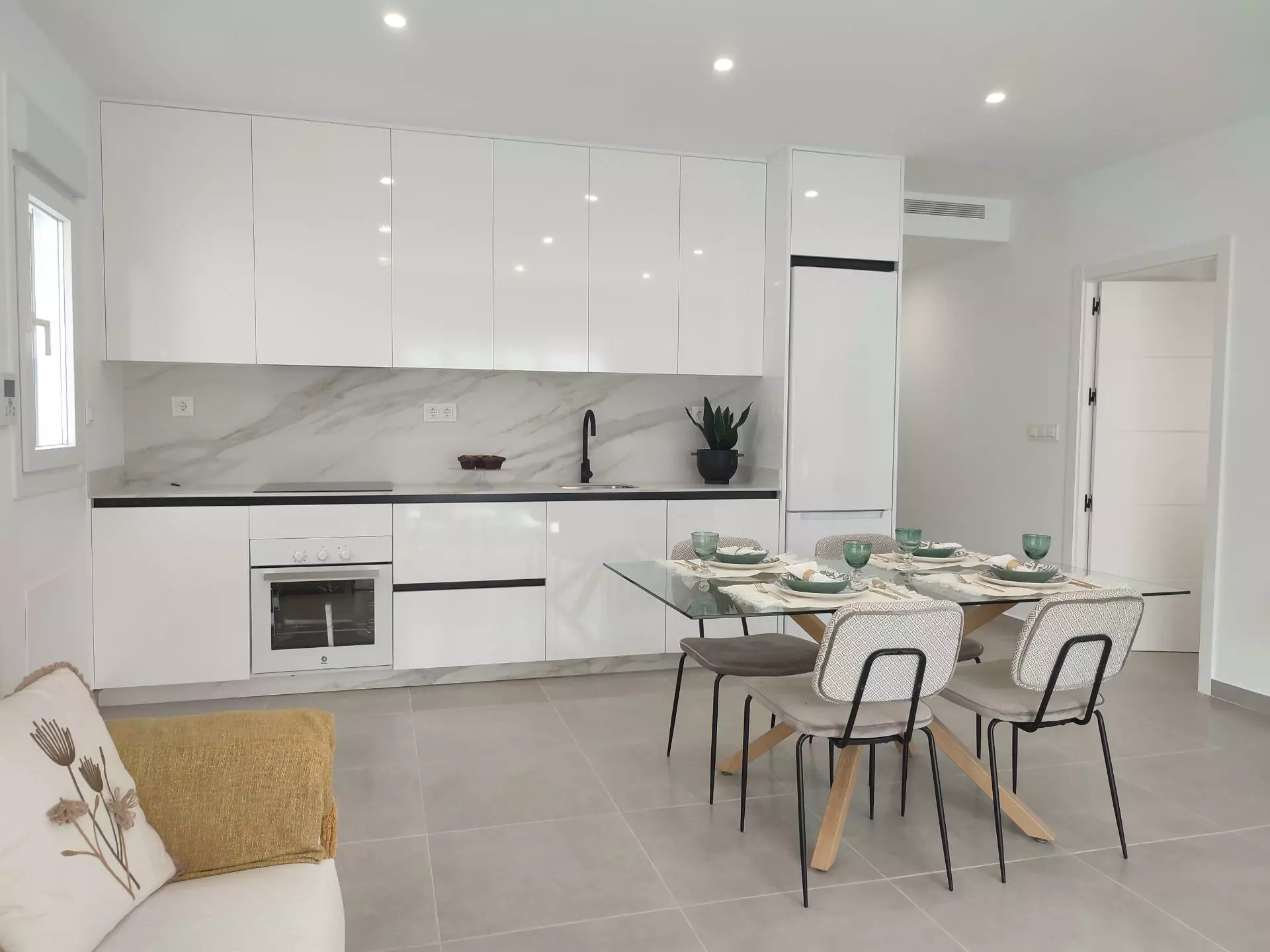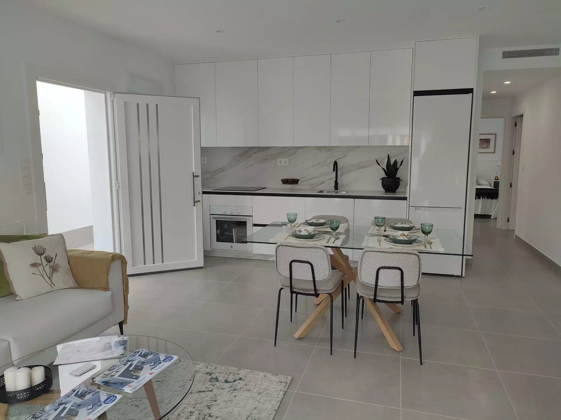 Each villa offers three bedrooms and two fitted bathrooms. Designed with a contemporary layout, the open-plan concept includes a fully-fitted kitchen and a lounge-dining area. The design focuses on practicality while providing functional space for daily use.