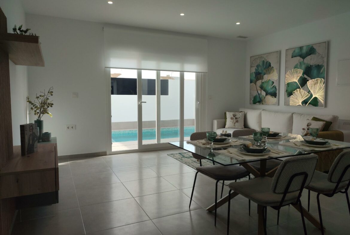 If you’re looking for a new home in a sunny location, consider the recently built one-level villas in Balsicas, Murcia. This residential complex features six detached villas, each with distinct amenities suitable for various lifestyle preferences.