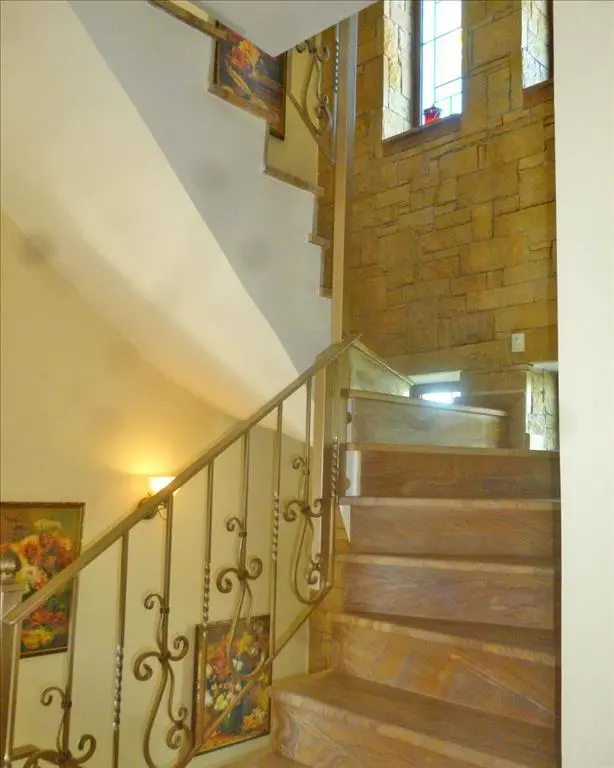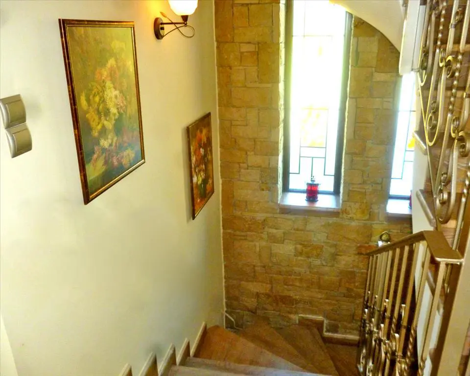 On the ground floor, you will find another bedroom and an expansive living room with a kitchen. This level also features an additional kitchen, a shower WC, a separate WC, and a storeroom. This variety of spaces allows flexibility for daily activities and storage.