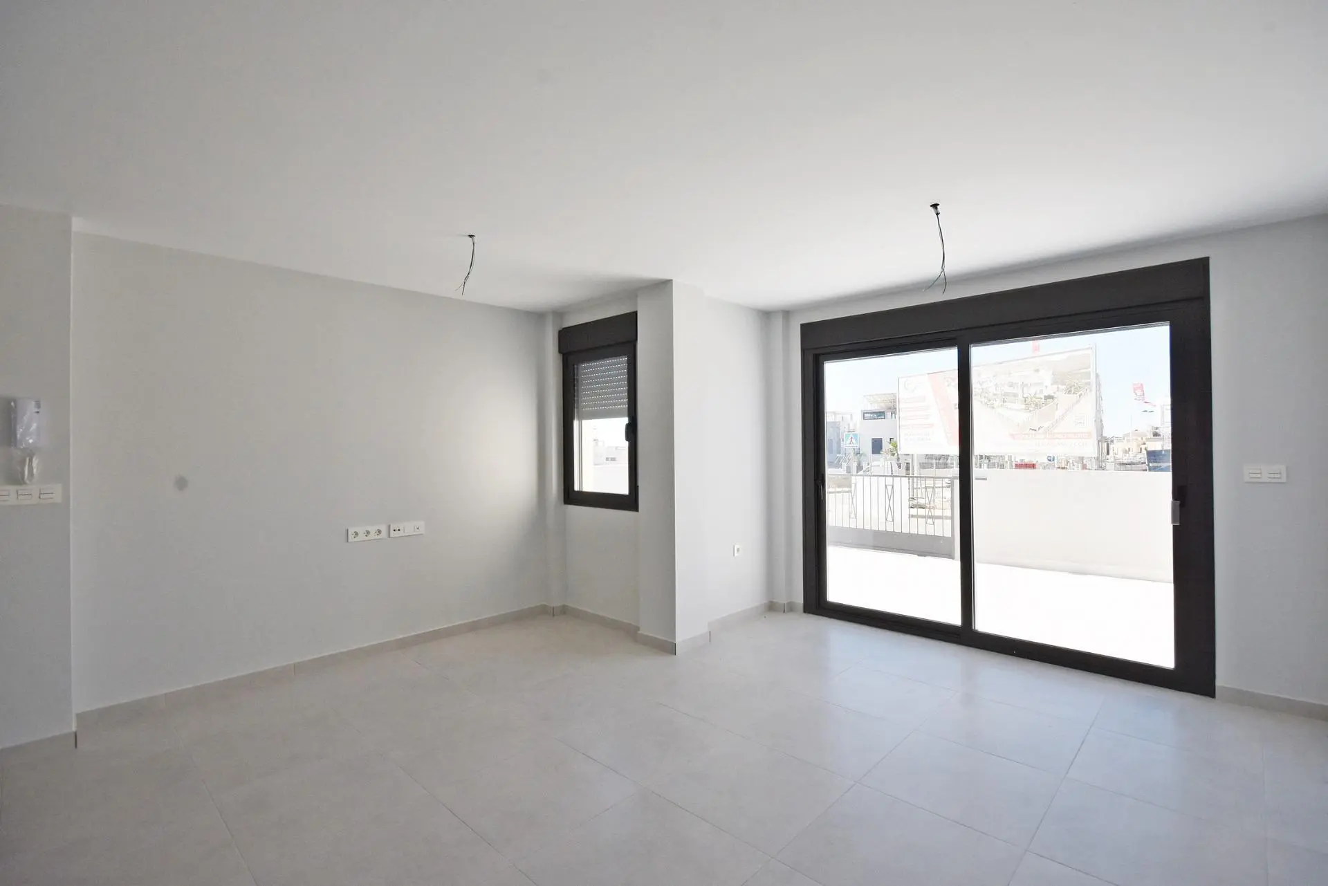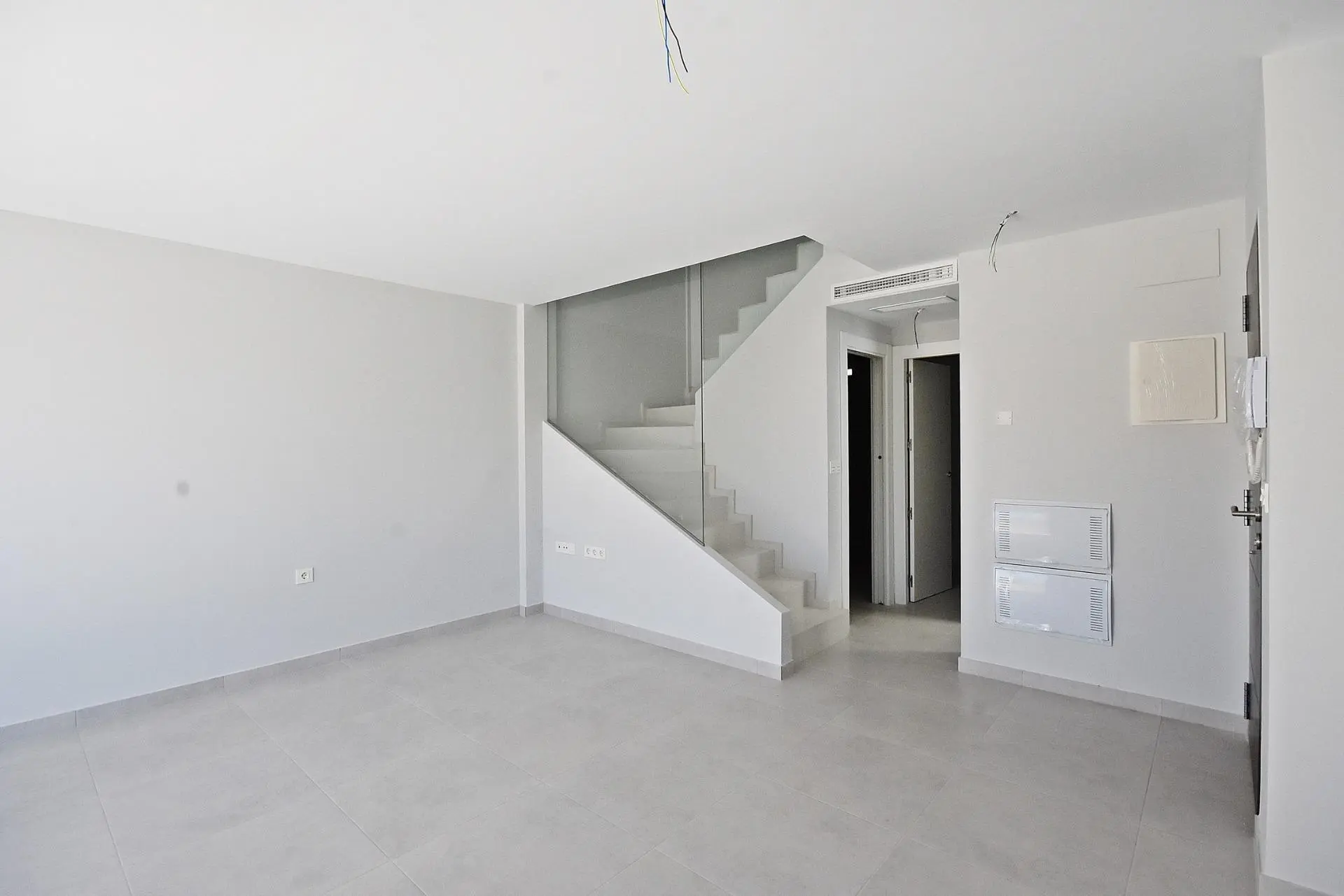 These homes are built with quality materials and include a reinforced entrance door, pre-installation for ducted air conditioning, bathrooms with furniture, mirrors, and shower screens, hot water system powered by aerothermal energy, electric blinds in bedrooms and main facade openings, and aluminum exterior carpentry with double glazing. The kitchen is delivered without furniture, allowing buyers to personalize it to their taste.
