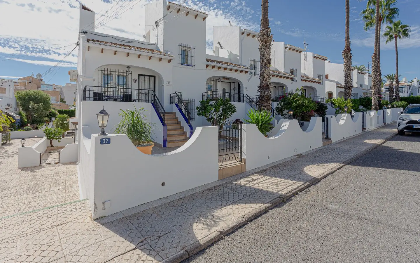 This charming townhouse is located in the well-known Verdemar urbanisation in Villamartín (Orihuela Costa). The property has been renovated and offers 3 bedrooms, 2 bathrooms and a guest toilet, providing a comfortable and functional layout. On the main floor, you will find a spacious living room, a fully equipped kitchen, and a guest toilet. From this level, there is access to two terraces: one at the front with morning sun, and another one facing south, perfect to enjoy the sun all day long. The upper floor is dedicated to the sleeping area, with 3 bedrooms and 2 bathrooms (one with shower and one with bathtub). On the lower level, there is a large 45 m2 south-facing terrace, ideal for relaxing or enjoying the Mediterranean climate. The top floor offers a 22 m2 solarium with outdoor shower and storage space, perfect for sunbathing or creating a chill-out area. Located close to all amenities, golf courses, and just a few minutes from the beaches of Campoamor and Cabo Roig, this property offers comfort, outdoor space and an excellent location.