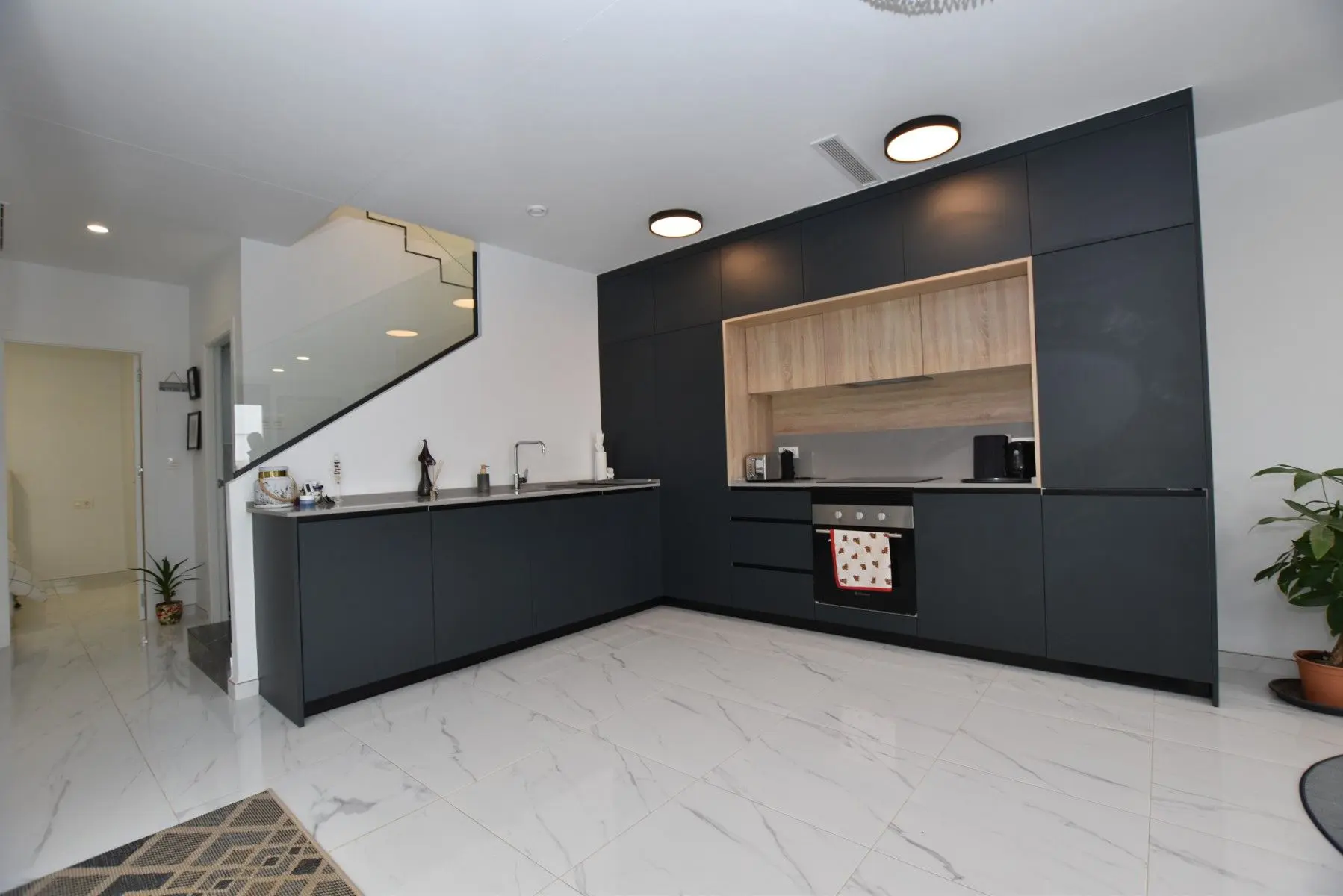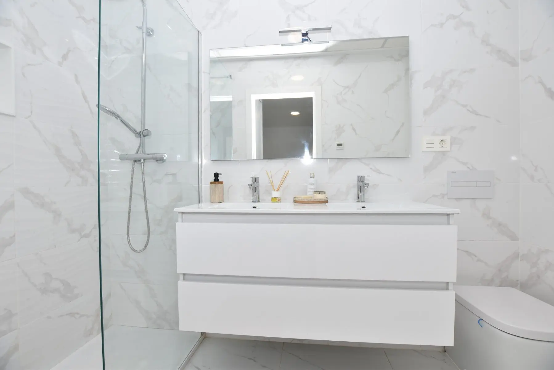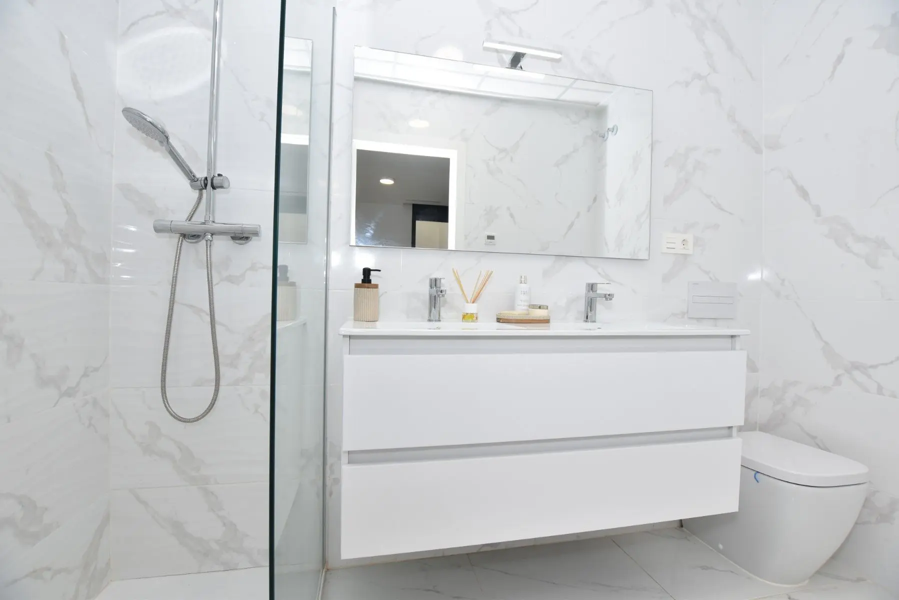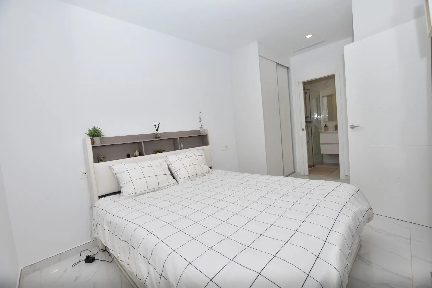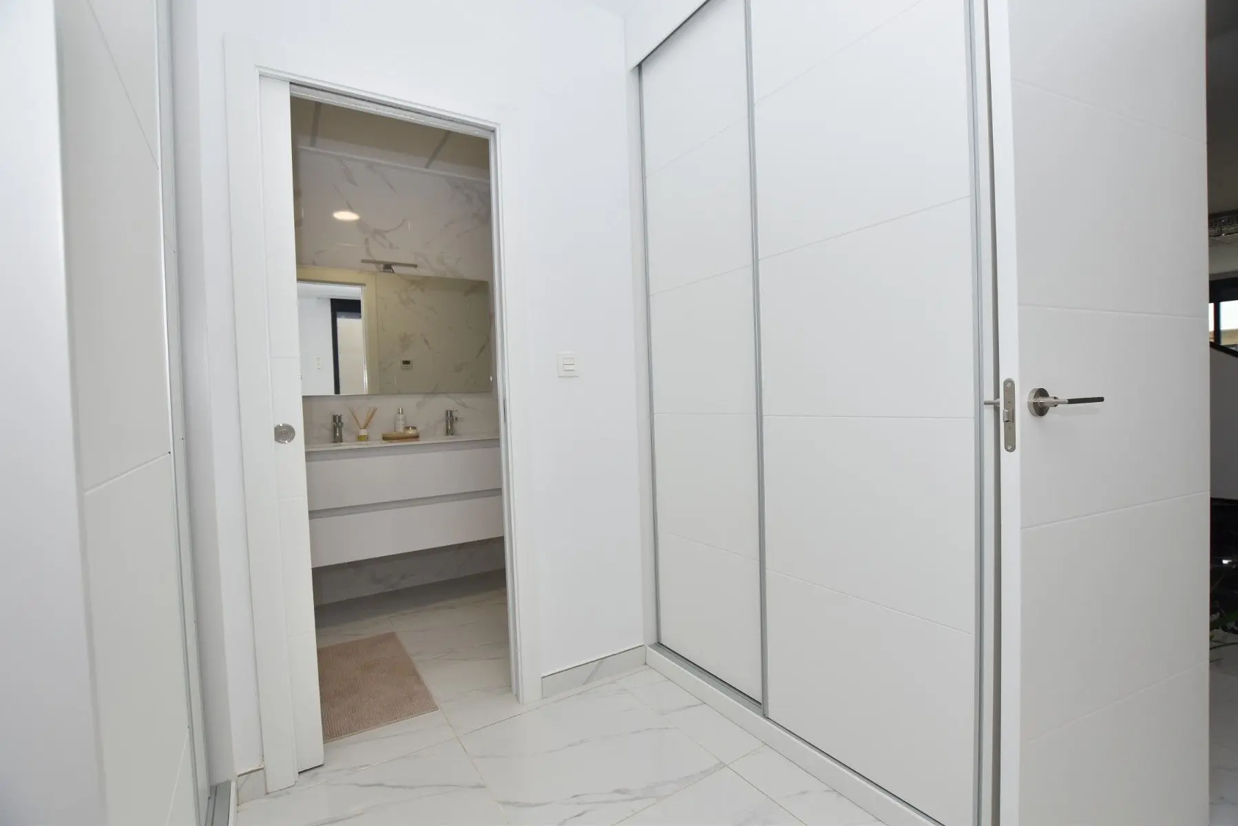 This modern detached villa, completed in 2025, is located in the well-established residential area of La Herrada, Los Montesinos. The property offers contemporary design, comfort, and a highly desirable location on the Costa Blanca. Upon arrival, the villa impresses with its clean architectural lines, private swimming pool, and off-road parking, providing both privacy and convenience. Inside, the home features a bright and spacious open-plan living area combining lounge, dining space, and kitchen, creating an inviting environment suitable for both everyday living and entertaining. A guest cloakroom is also located on this level. The master bedroom is situated on the ground floor and benefits from walk-through wardrobes and an en-suite shower room, making this layout ideal for those seeking main living accommodation on one level. Upstairs, there are two double bedrooms, both with built-in wardrobes and excellent natural light, along with a modern family bathroom. A generous terrace is accessible from this floor, offering additional outdoor space. From the terrace, external stairs lead up to the private rooftop solarium. This area provides open views across the surrounding countryside and both salt lakes, offering an ideal setting for sunbathing, relaxing, or outdoor dining. The villa is sold with most of the furniture included and is fully air conditioned throughout, allowing immediate enjoyment. The location is particularly convenient, with a local supermarket, bars, and restaurants within a five-minute walk. The beaches of Guardamar del Segura and Torrevieja are approximately fifteen minutes away by car, while Vistabella Golf is just a ten-minute drive.