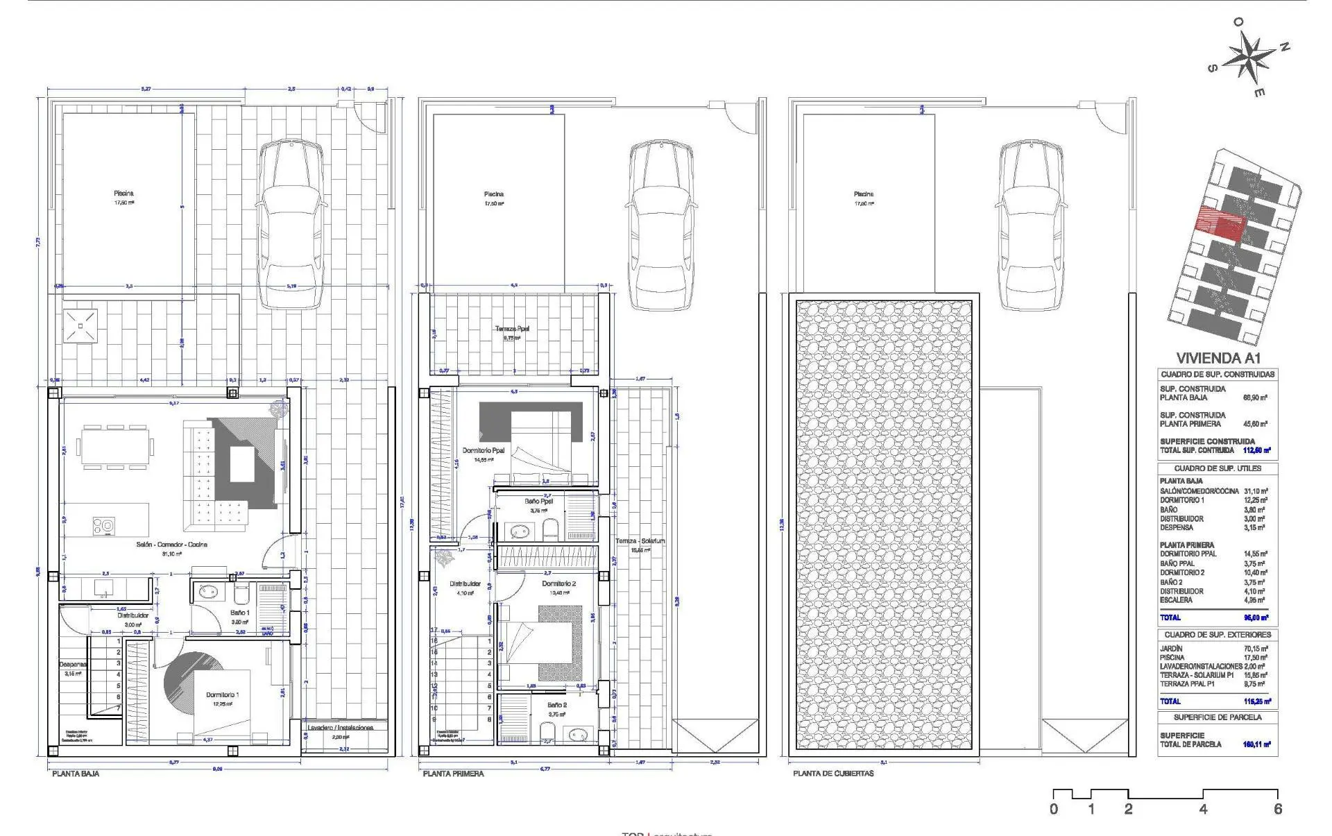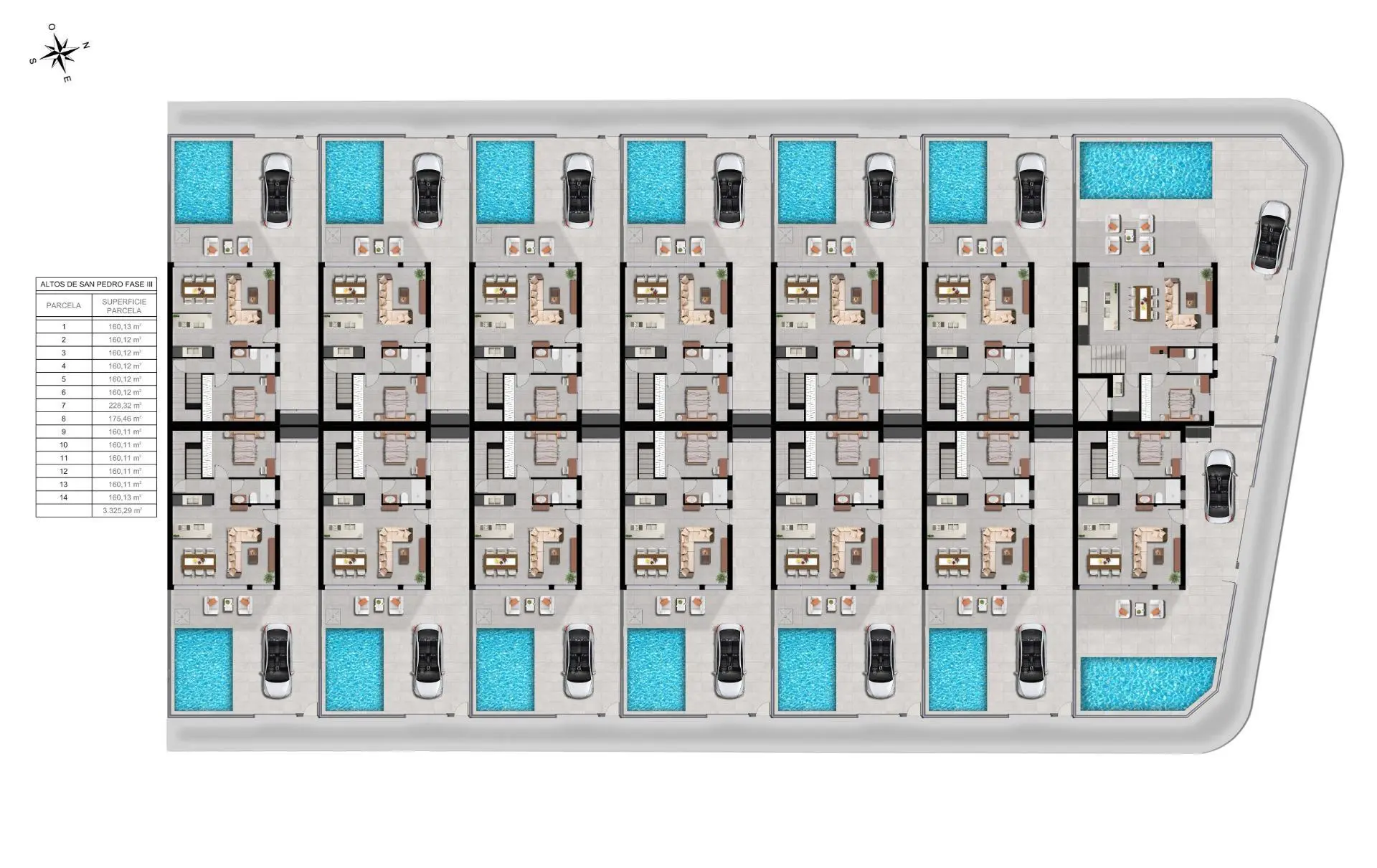 Discover the third phase of this exclusive residential project in San Pedro del Pinatar, where modern architecture meets comfort and functionality. These 14 semi-detached villas are designed with a minimalist style and high-quality finishes, offering an elegant and sophisticated living experience on the Costa Calida. Each villa features 3-4 spacious bedrooms, 3 bathrooms, private swimming pool, terraces, and a private garden, creating the perfect environment for privacy, relaxation, and Mediterranean outdoor living.