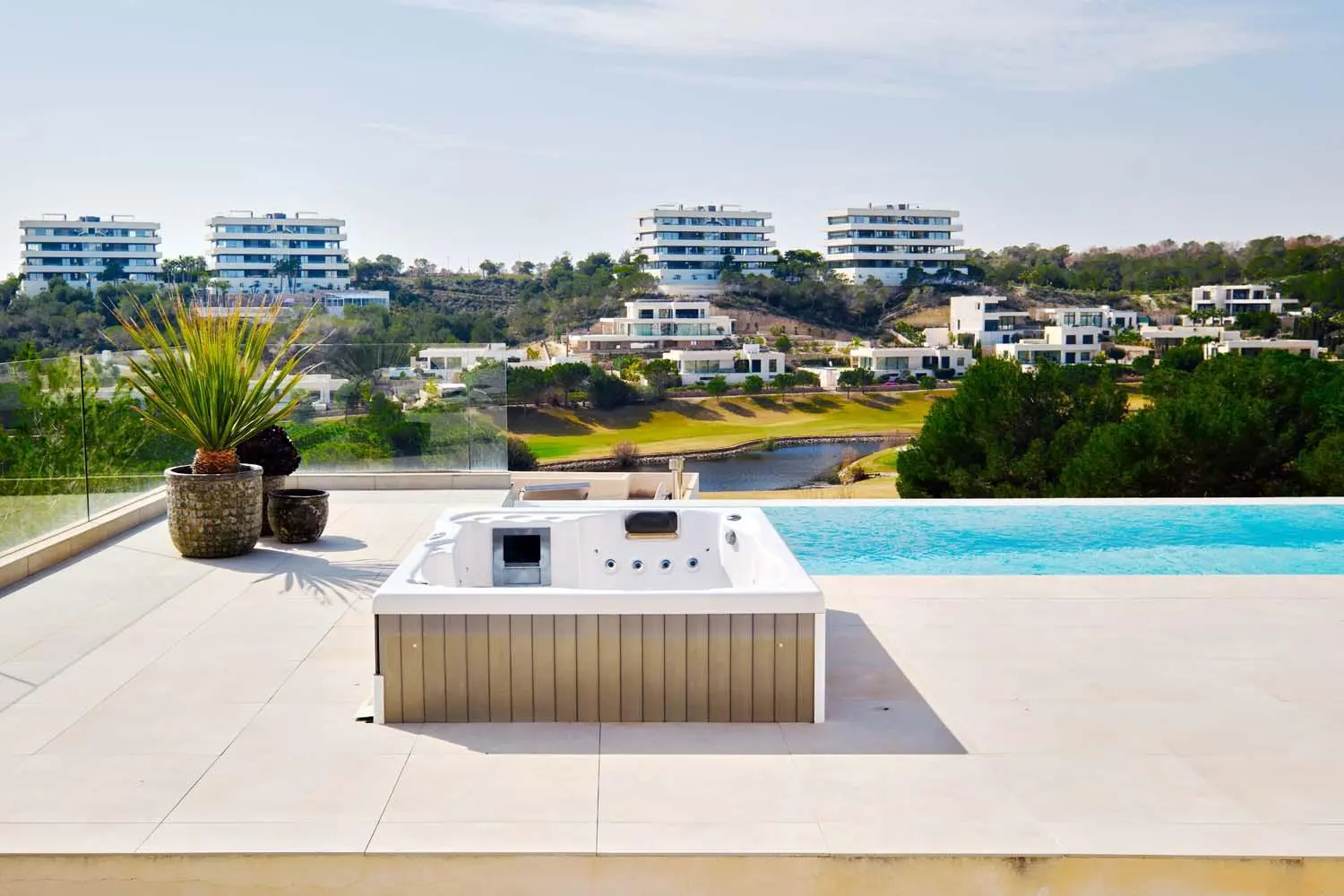 Exclusive, modern villa located on the award-winning Las Colinas Golf & Country Club, ~one of Europe’s most prestigious resorts. Set on a generous 1,707 m2 plot, the property offers complete privacy, a south-facing orientation, and breathtaking panoramic views over the golf course and the sea.~~The villa features 3 spacious bedrooms, 2 luxury bathrooms, a bright open-plan living area, and a fully equipped designer kitchen. Large sliding doors create a seamless connection between indoor and outdoor living. The expansive terrace with infinity pool and jacuzzi makes this home perfect for relaxation and enjoyment all year round.~~A large underbuild with its own bathroom and terrace offers excellent potential for additional bedrooms or a self-contained guest apartment. High-quality finishes include zoned air conditioning, underfloor heating in the bathrooms, electric sun blinds, and premium windows.~~As an owner, you benefit from 24/7 security, exclusive sports and wellness facilities, and access to the private beach club. Ideally located close to beaches, fine dining, and international airports.~~A unique opportunity for those seeking luxury living, strong investment value, and an exceptional lifestyle on the Costa Blanca.