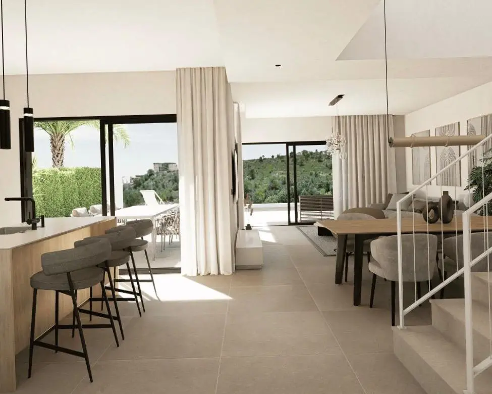 Stunning New Villa in Benidorm – Sierra Cortina! This magnificent villa offers 222 m2 of total space (150 m2 usable) with 3 bedrooms, 3 bathrooms, a modern kitchen, and a spacious living room. Enjoy 2 balconies, a large terrace, and a private 4×9 m swimming pool on a 500 m2 plot with parking for 2 cars. Turnkey property – fully furnished with premium built-in furniture and high-quality finishes. Breathtaking views of Benidorm’s skyscrapers and the Mediterranean Sea! Just 4 km to the beach, with a shopping center and supermarkets within walking distance. This villa is fully built and ready to move in – your dream home in one of Spain’s most sought-after locations! Book your visit now and experience luxury living in Benidorm!