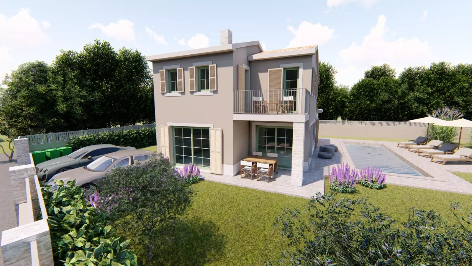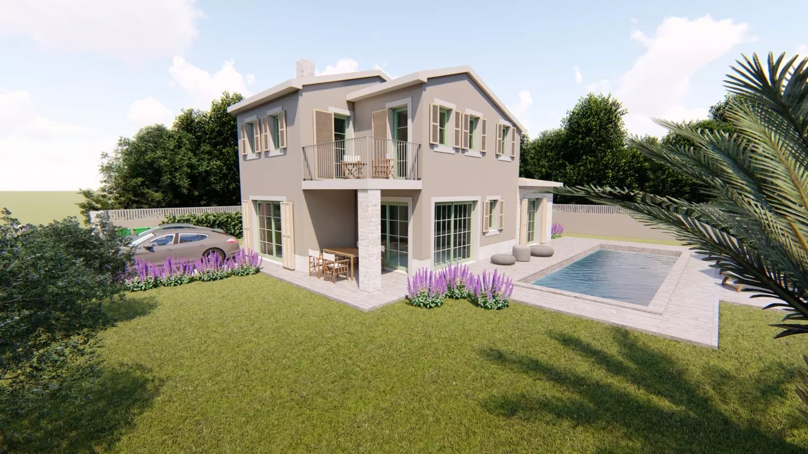 When considering the features, the villa is planned to include three bedrooms, each with the convenience of its own en-suite bathroom. This offers a good degree of privacy for residents and guests alike. Additionally, there’s a separate guest toilet, which is always a practical touch. The open-plan living, dining, and kitchen area forms the central hub, designed for both day-to-day living and entertaining. For practicalities, there’s a dedicated storage room and a technical/utility room, ensuring that everyday functions are neatly managed. Comfort is also a key consideration, with plans for underfloor heating throughout the property, complemented by an energy-efficient heat pump system, aiming for both comfort and lower running costs.