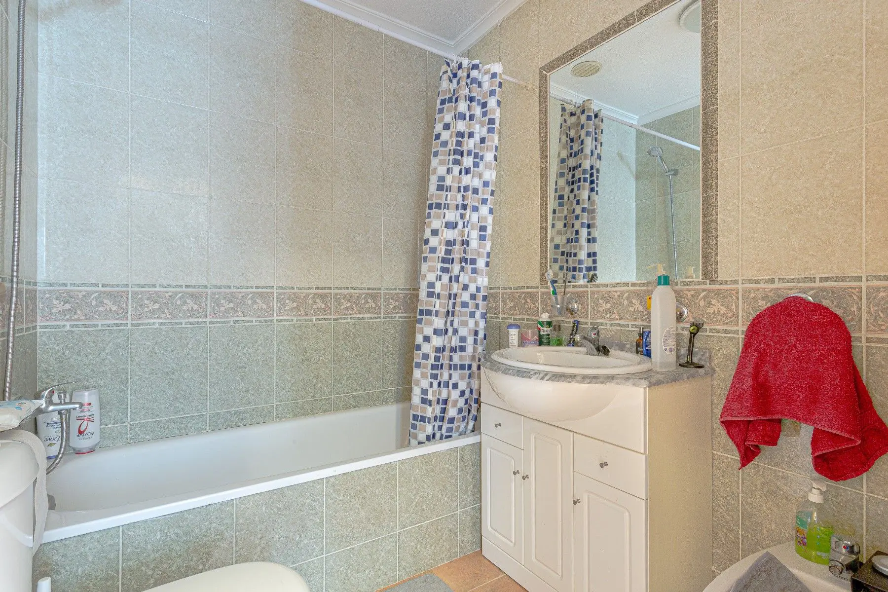 This 86 m2 townhouse for sale is located in El Mojón, one of the most peaceful coastal areas of Pilar de la Horadada, just 300 metres from the sea, close to beaches, the promenade and parks, and surrounded by all essential services such as supermarkets, restaurants and sports areas. The house is divided into two floors: Ground floor: spacious 22 m2 living-dining room, perfect for family gatherings; independent kitchen fully equipped; one bedroom on this level with easy access; full bathroom; and a storage room ideal for bikes, beach gear or tools. There is also a front terrace to enjoy the outdoors. First floor: features two bright bedrooms, both with built-in wardrobes, a full bathroom and a private terrace. On the rooftop there is a private solarium, ideal for sunbathing, relaxing or enjoying the sea breeze. Its excellent location makes it perfect as a permanent residence or a holiday home in the South Costa Blanca, with the beach, promenade and green areas just a short walk away.