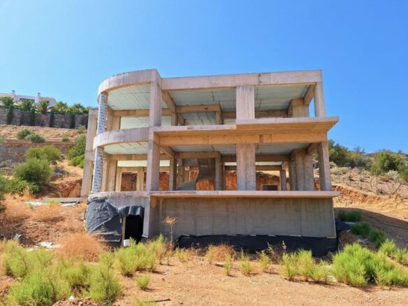 Located very close to the city of Heraklion, a three-story villa is for sale, built in a prime location on a picturesque hill. It consists of a ground floor of 160 sq.m., a first floor of 160 sq.m., and a second floor of 100 sq.m. This 420 sq.m. villa stands out for its incredible view of the deep blue northern sea of Crete and the surrounding area, as it is built on a hill, offering panoramic unobstructed views. The villa features a private infinity pool with amazing panoramic views over the bay, the city of Heraklion, and the nearby islands. It includes 2 kitchens, 5 bedrooms, 4 bathrooms, a W.C., 2 storage rooms, and a fireplace. The year of construction is 2003.