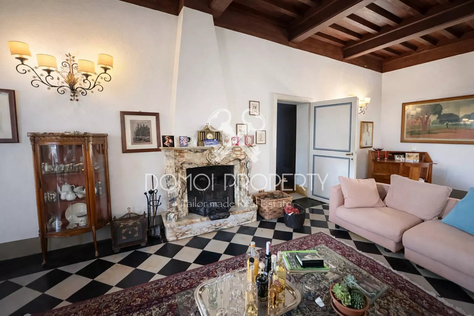 L’ingresso alla proprietà è scenografico, grazie a una maestosa scalinata che conduce al piano principale. Qui si sviluppano ambienti ampi e luminosi: una grande sala di rappresentanza impreziosita da un imponente camino, perfetta come spazio conviviale, un salotto separato, 4 camere da letto e 3 bagni.
