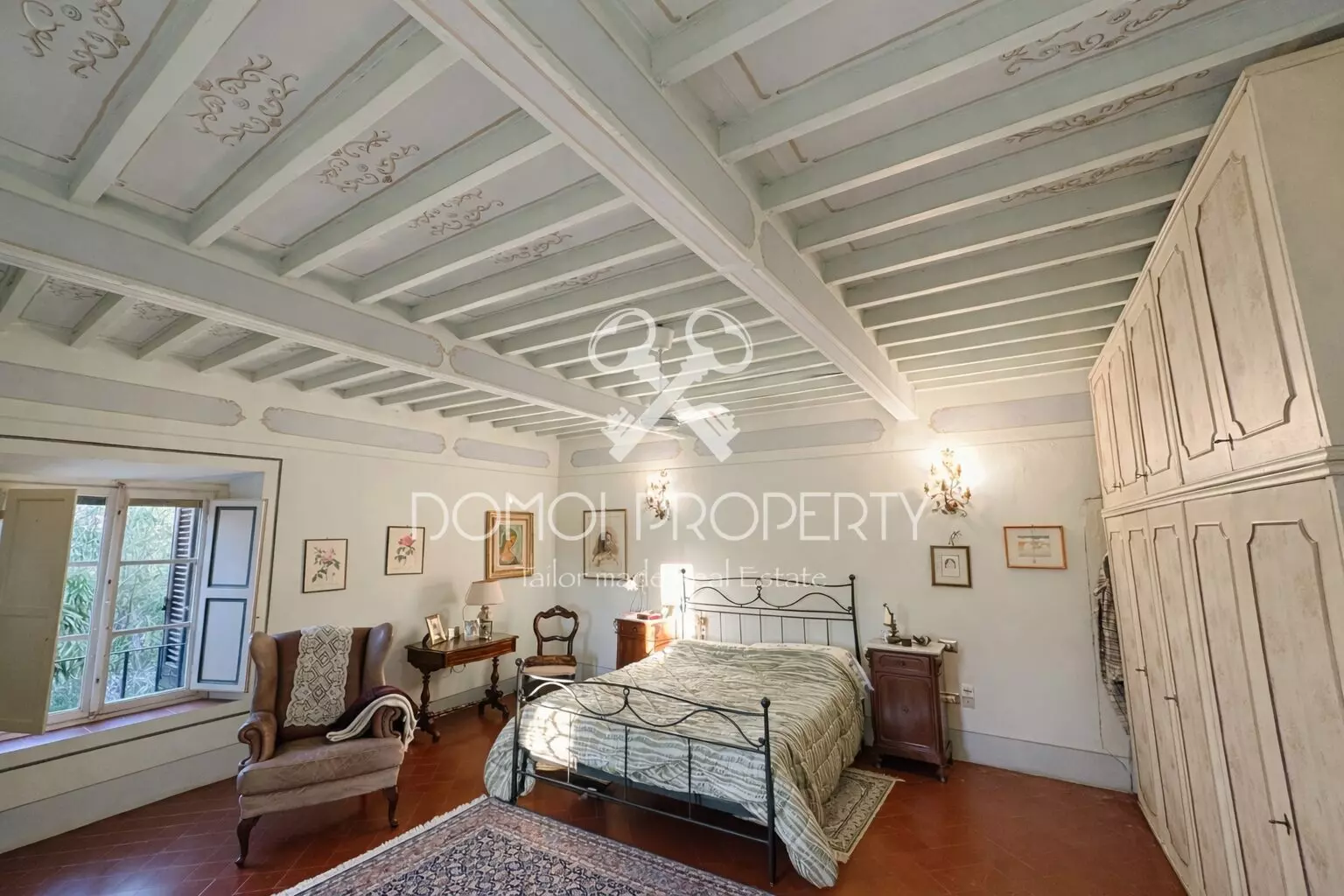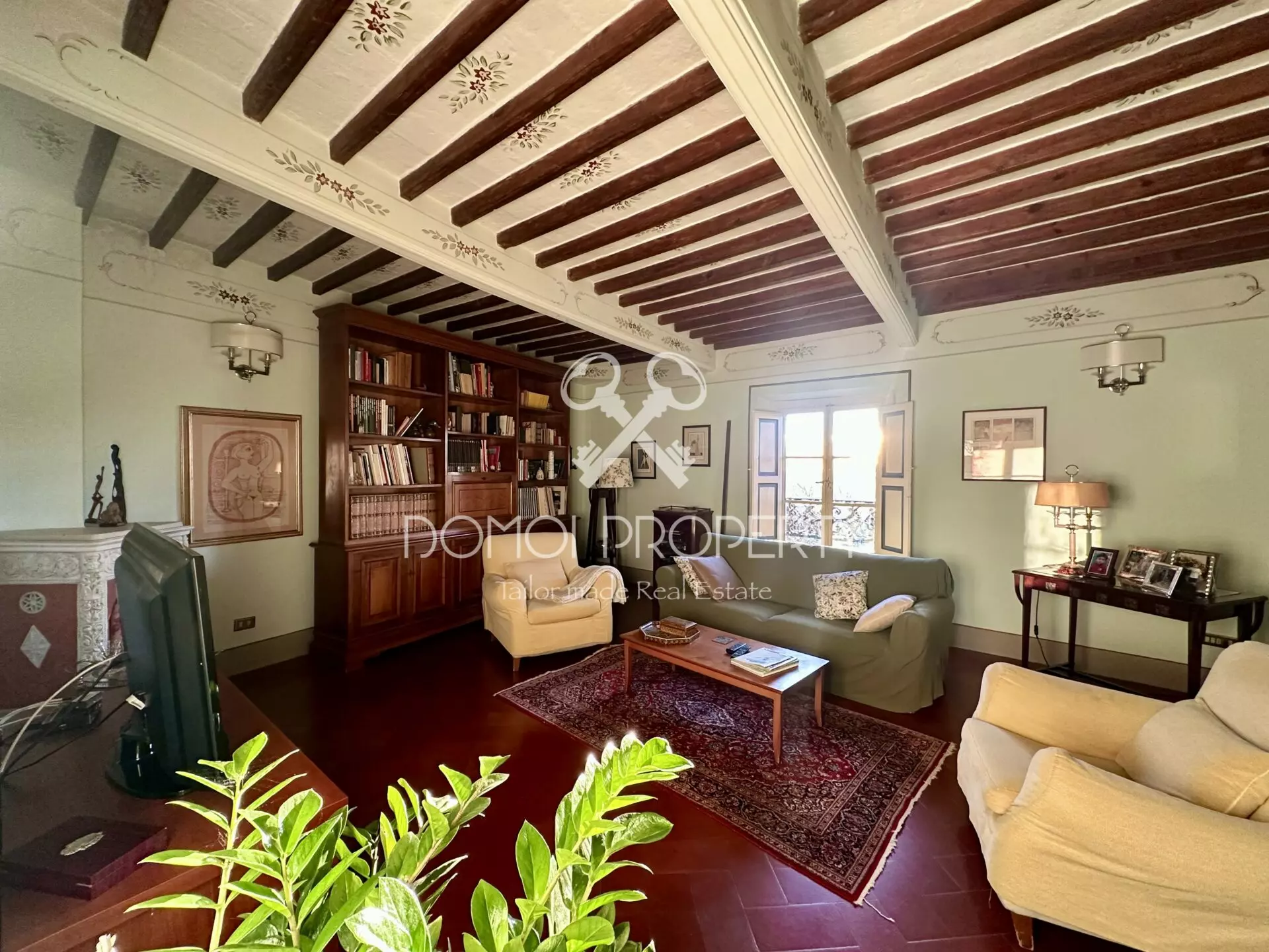 Un elemento di assoluto valore è la presenza, in ogni stanza, di soffitti a cassettoni decorati, finemente conservati, che conferiscono carattere e prestigio a tutta la villa.