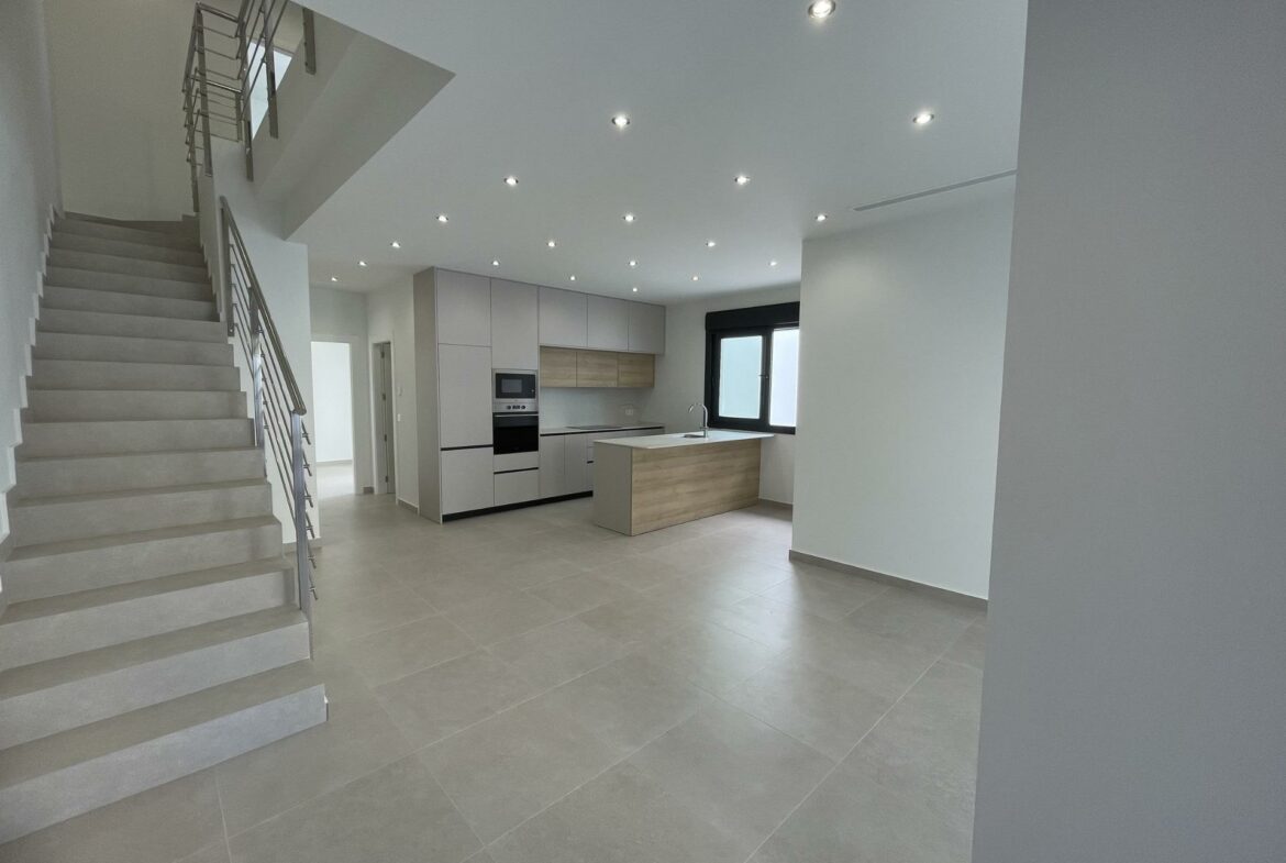 These newly constructed villas showcase a modern Mediterranean design that emphasizes functionality. Each villa spans two floors, providing bright interiors that connect seamlessly with outdoor spaces. The layout is designed to promote convenience and use of space for daily living.