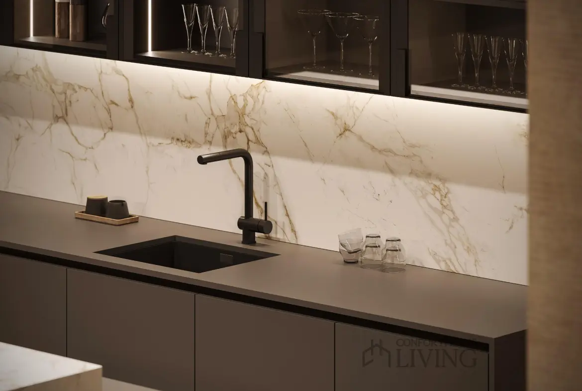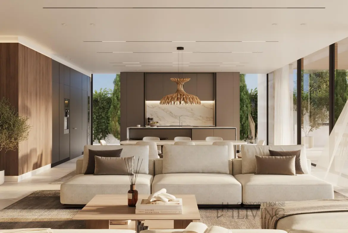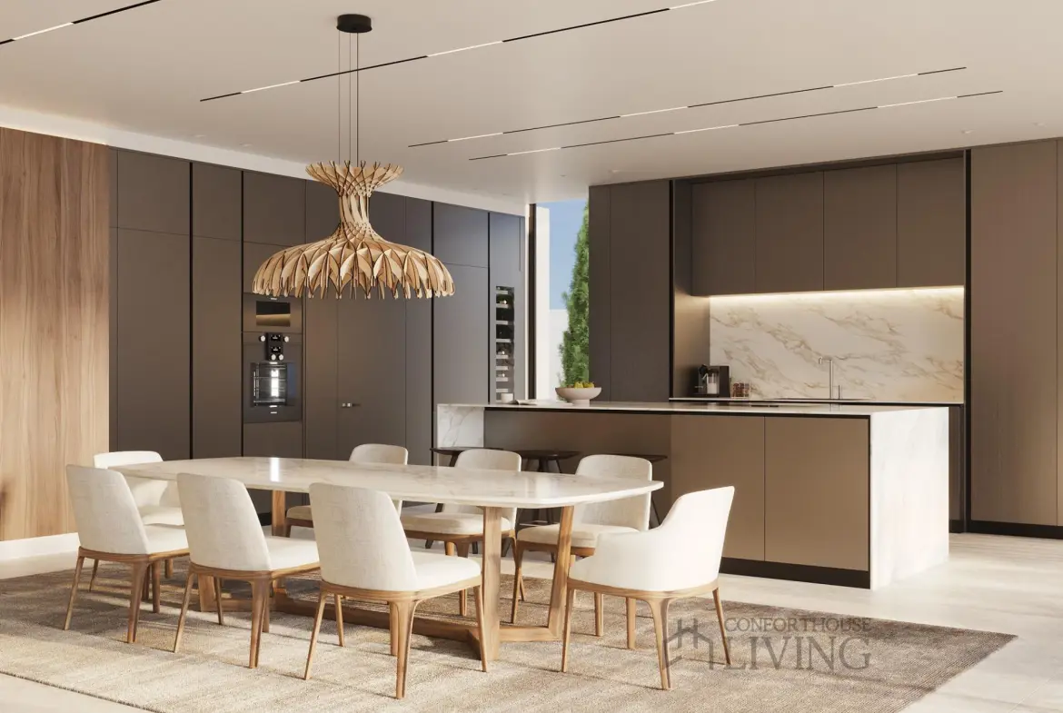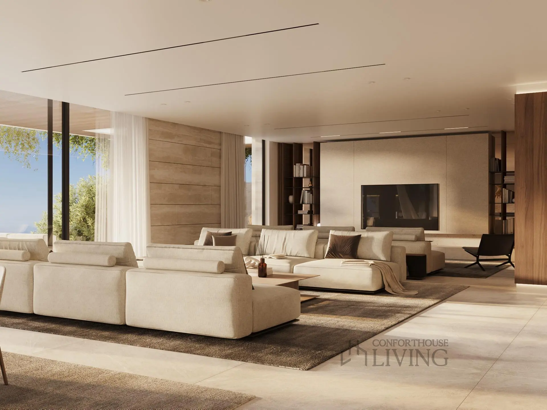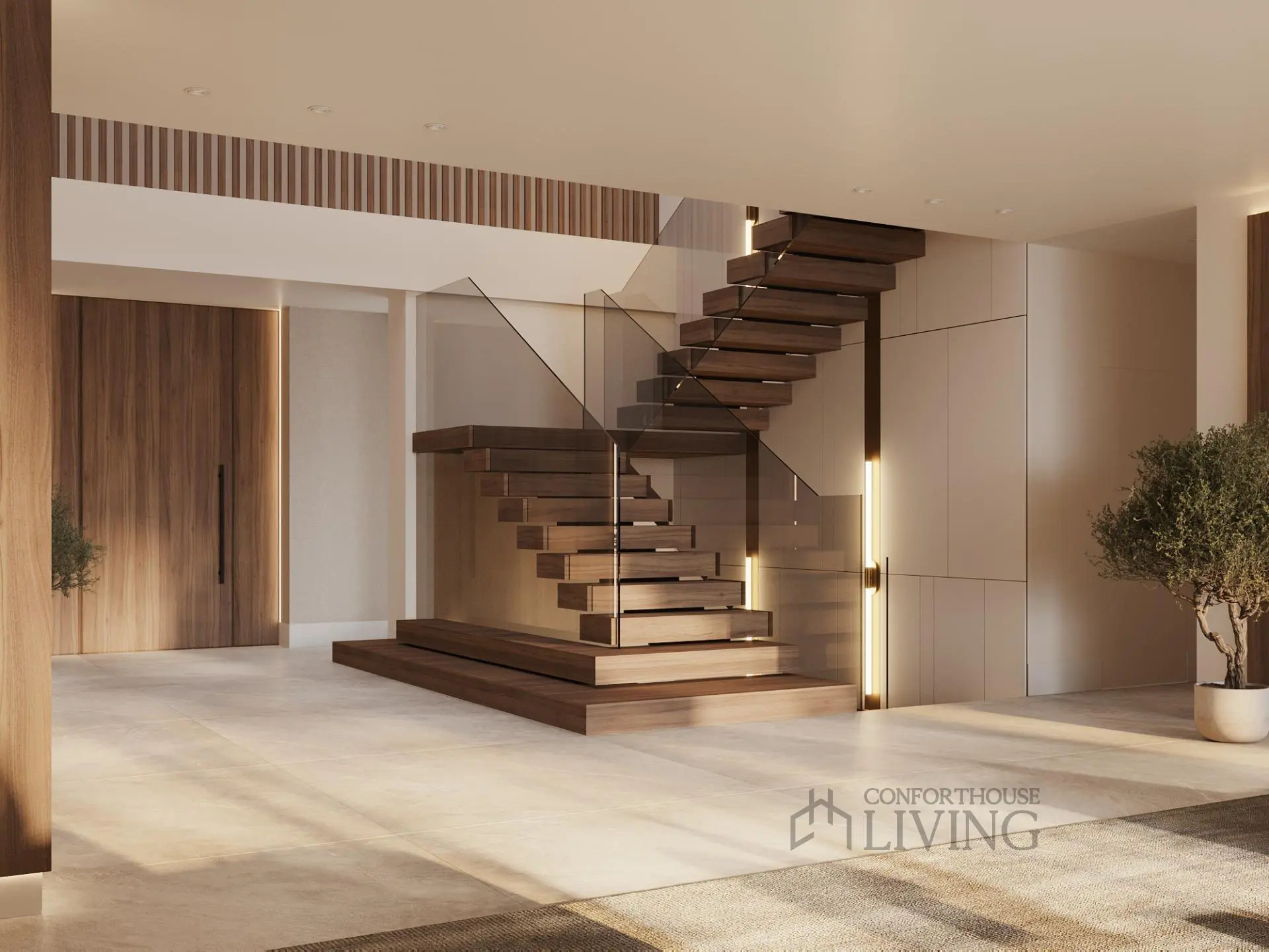 Each villa comes with a fully finished individual private basement, containing a foyer, en-suite room, restroom, utility room, and versatile space that may include direct access from the garage. Access to the main living area from the private basement is facilitated by a private elevator and a staircase connecting all floors of the house.
