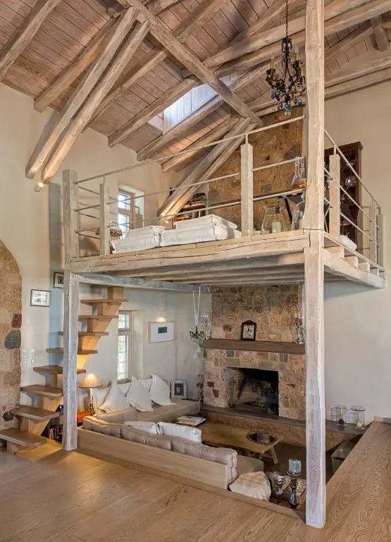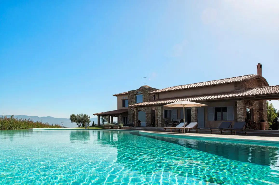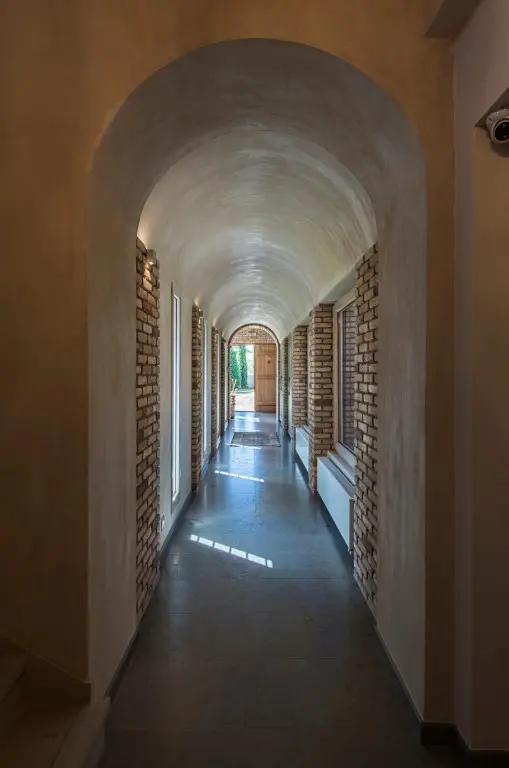 The villa includes a fireplace, which could be beneficial during the cooler months. Air conditioning is installed throughout the property, ensuring a comfortable climate regardless of the season. The building is equipped with an elevator for convenient access across its levels. This design caters to those seeking ease of navigation within the home.