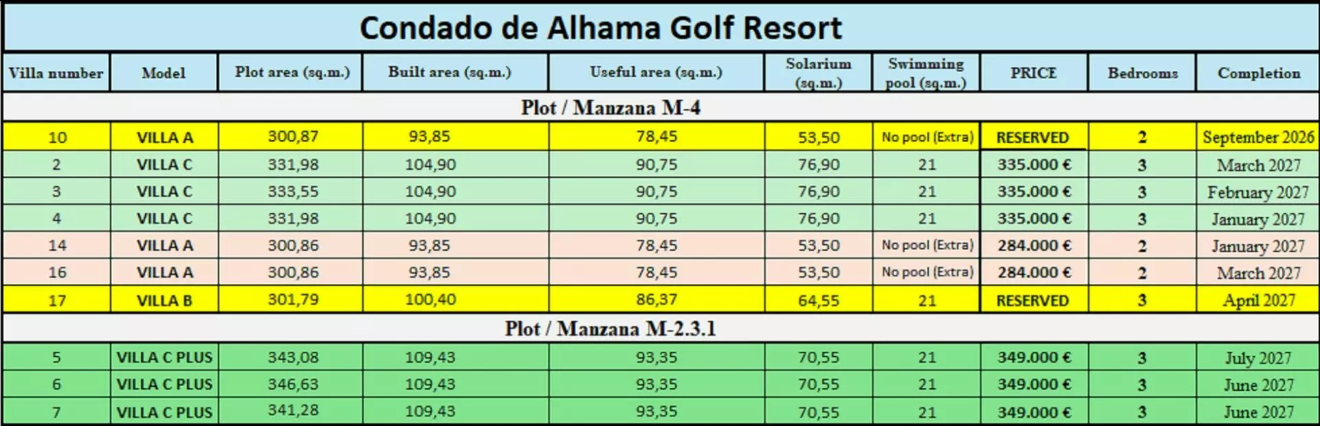 - Villa A: This model includes 2 bedrooms and 2 bathrooms. Notably, a private pool is available as an additional feature. *Price: 284,000 €*