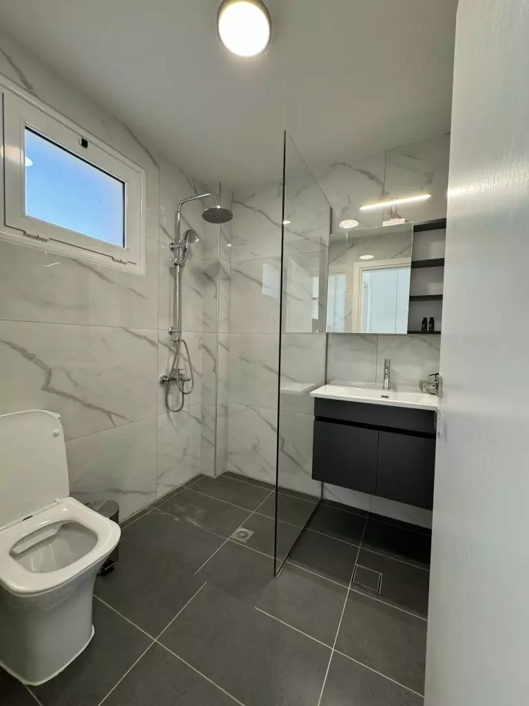 On the ground floor, the living room seamlessly connects with the kitchen, alongside an additional WC for convenience. The flow of the layout allows easy movement between spaces, making it functional for everyday living.