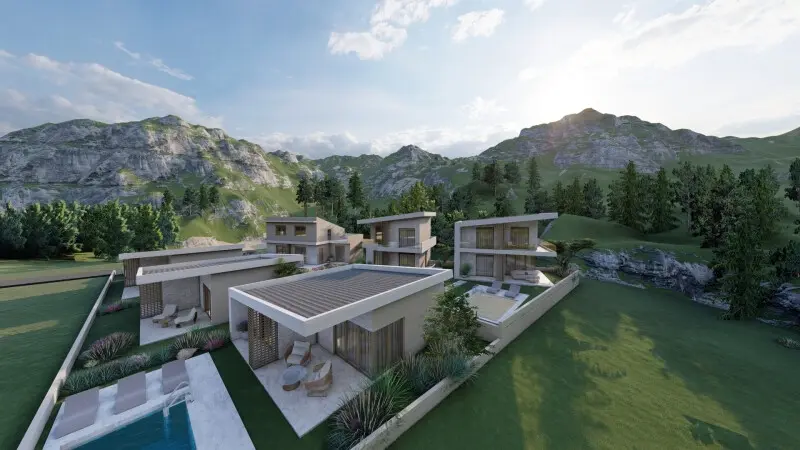 The villa also includes a private swimming pool, providing both recreational options and a way to cool off on warm days. This addition is particularly appealing for those looking to enjoy a more private lifestyle while still having access to leisure facilities.