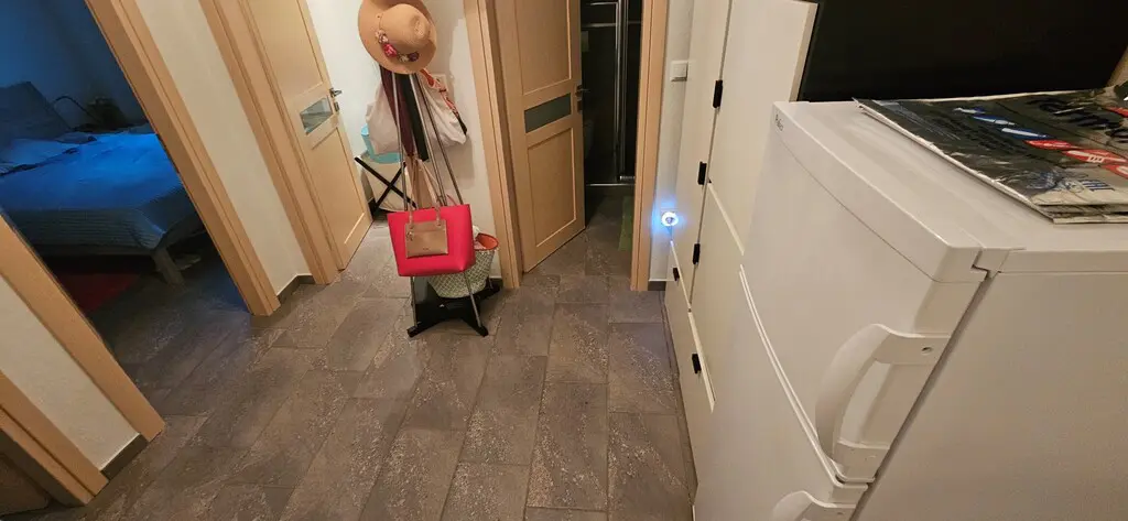 The first floor introduces a more private setting with three additional bedrooms and another shower WC. This arrangement offers an efficient division of space that can accommodate families or groups comfortably.