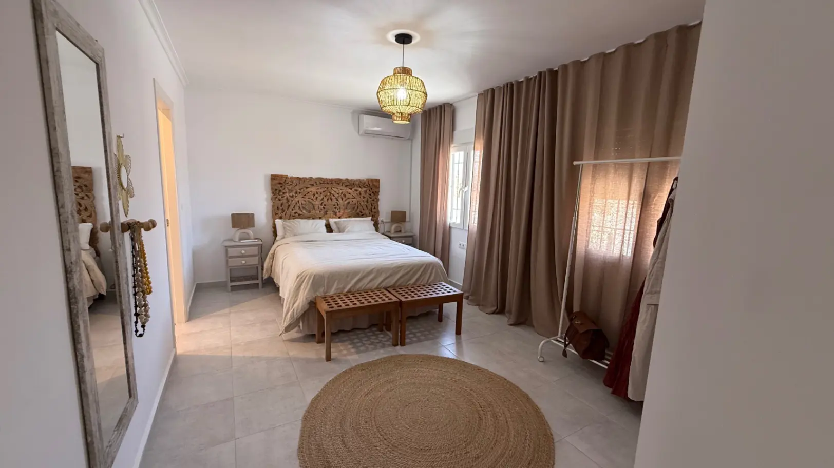 This home has undergone thoughtful updates that merge modern Nordic design principles with traditional Spanish features. The interior offers a combination of contemporary aesthetics and classic elements, creating a unique living environment. A noteworthy aspect of the home is the spacious glass-enclosed veranda, which provides views of the pool area and the well-maintained gardens, facilitating an indoor-outdoor living experience.