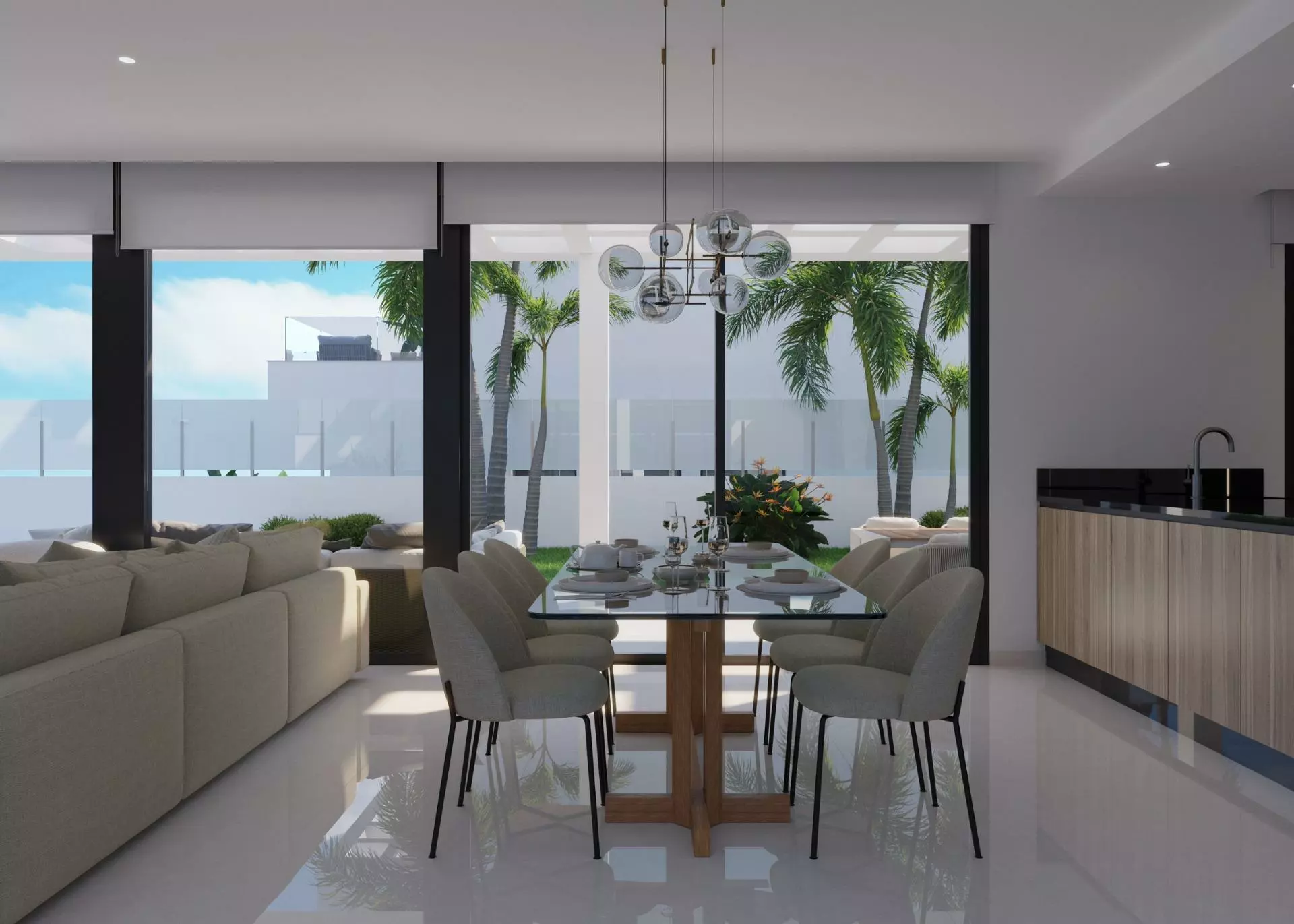 These villas come equipped with three bedrooms and three bathrooms, making them suitable for families or individuals looking for extra space. The open plan kitchen connects seamlessly with the lounge area, providing an ideal setup for both cooking and hosting. A terrace is accessible from the main living area, boasting views that can truly enhance your outdoor experience.