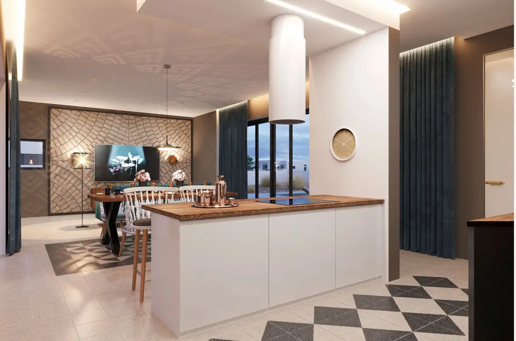 The villas available in this complex are designed with three bedrooms and three bathrooms, ensuring enough space for a variety of needs. The layout includes a living room and an open plan kitchen, making it functional for daily living. Each villa comes with its own independent plot, providing a terrace, garden, and an individual swimming pool, which are ideal for outdoor activities or relaxation.