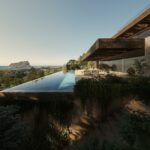 This architecturally designed home represents modern construction techniques that harmonize with the environment. Built with reinforced concrete and complemented by wooden details, the design of the home incorporates large glass panels to enhance natural light and provide views of the sea and greenery. The structure is arranged on various terraces aligning with the natural slope of the land, ensuring unobstructed views from multiple vantage points.