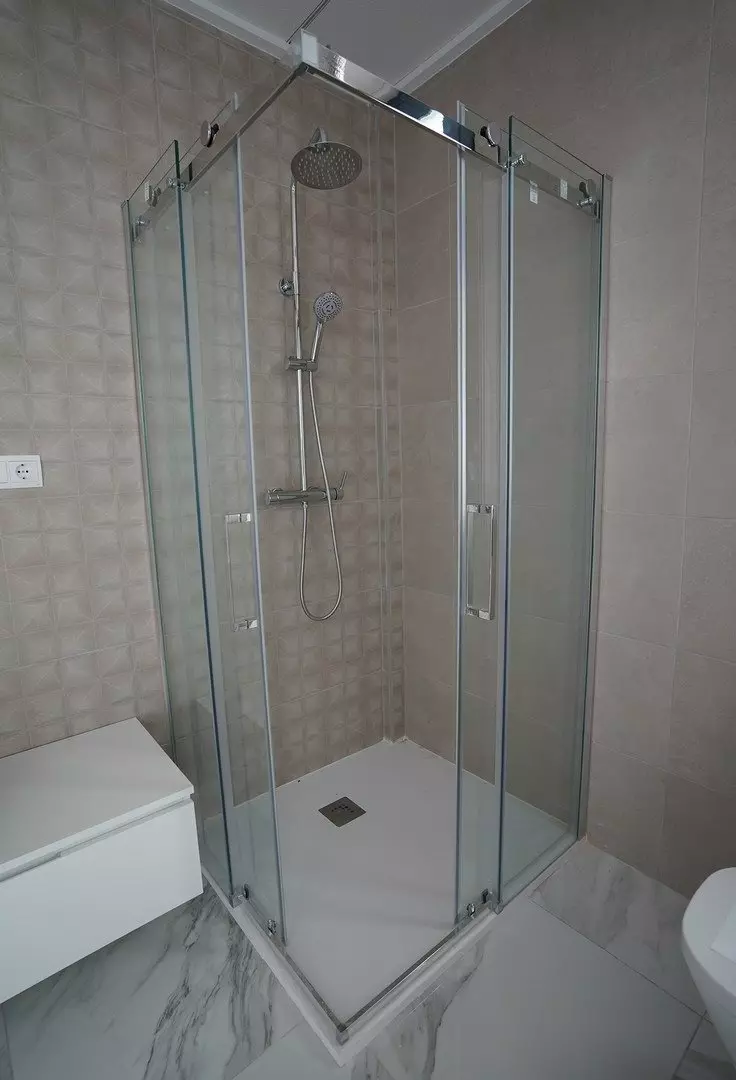 The villas include an open kitchen and a living room that seamlessly flow together, creating an inviting space for daily activities. There are three bedrooms, which provide ample room for family members or guests. Two bathrooms are also part of the layout, ensuring that daily routines can run smoothly. A large terrace allows for outdoor relaxation or entertaining.