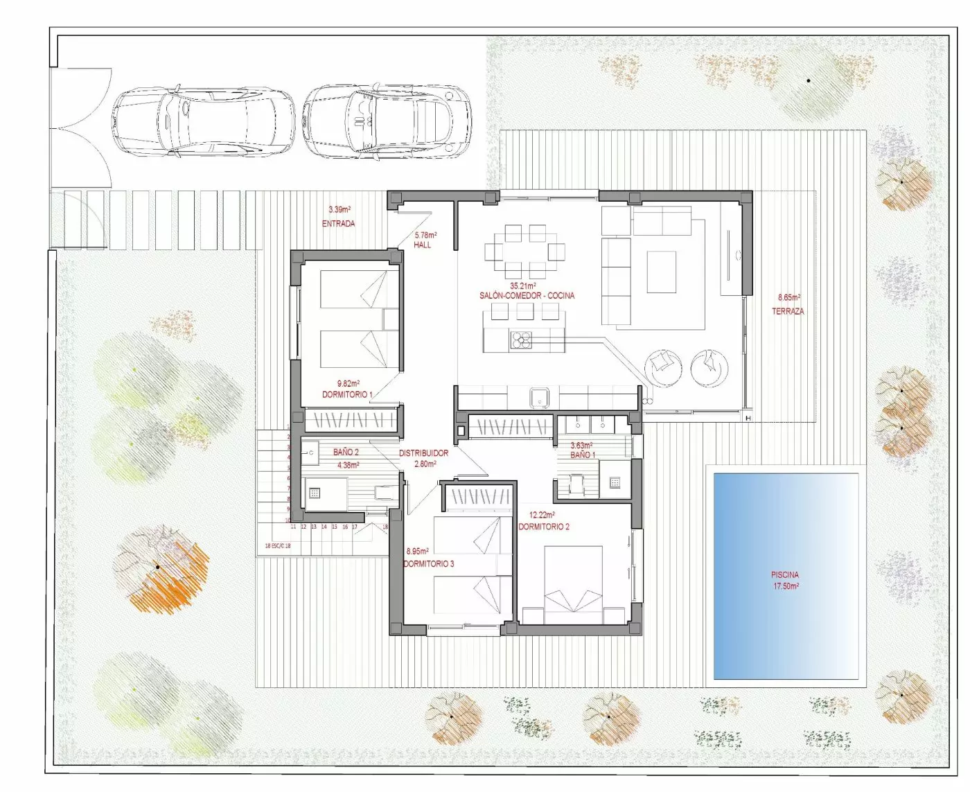 Each villa spans one level, designed with efficiency in mind. The minimum plot size is 400 m2, allowing for independent outdoor spaces. You’ll find a closed perimeter area that offers good privacy along with a private pool, perfect for enjoying the sunny Mediterranean climate. Plus, there’s a designated parking area and motorized access for convenience.