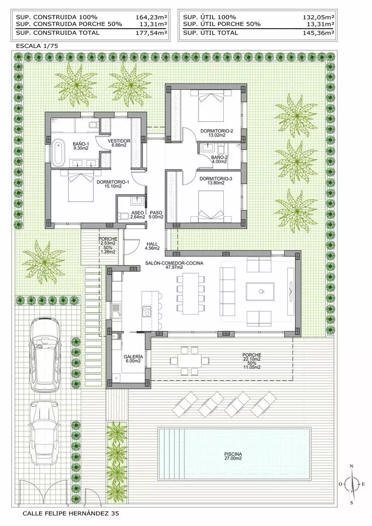 These new build villas feature a contemporary design, focusing on functionality. Each villa includes a living-dining area complemented by an open-plan kitchen, which enhances the flow of space. With three bedrooms, one of which is en-suite, these properties provide ample room. Overall, they come with three bathrooms, which can significantly ease daily routines.