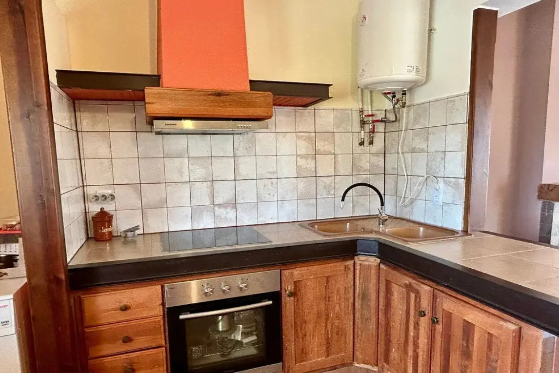 This estate features two distinct buildings. The main residence presents a spacious lounge-diner equipped with a traditional wood-burning stove. The open-plan kitchen offers a functional layout, enhancing everyday usability. In total, there are three bedrooms, one of which comes with an en-suite full bathroom, along with an additional separate shower room.
