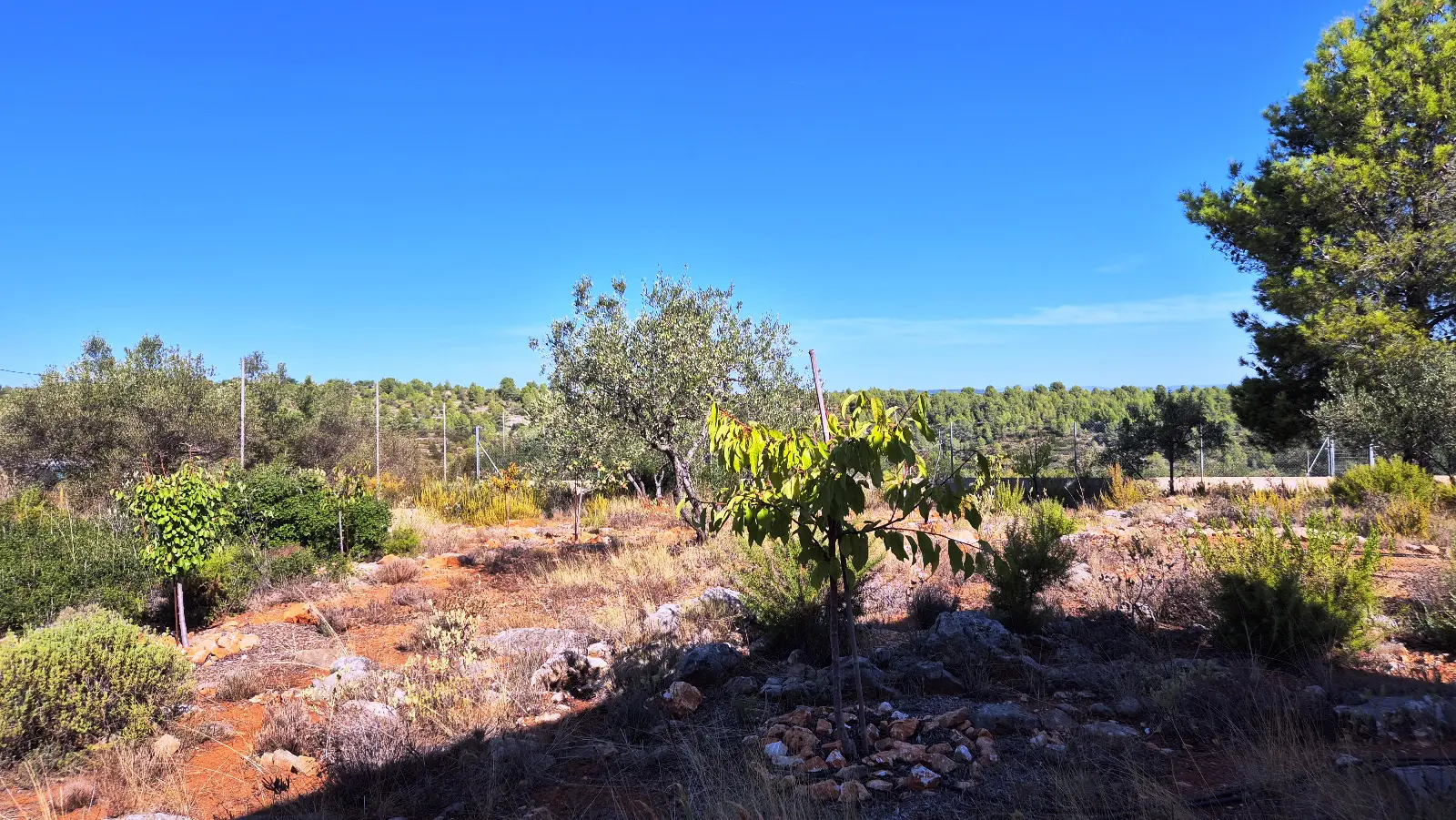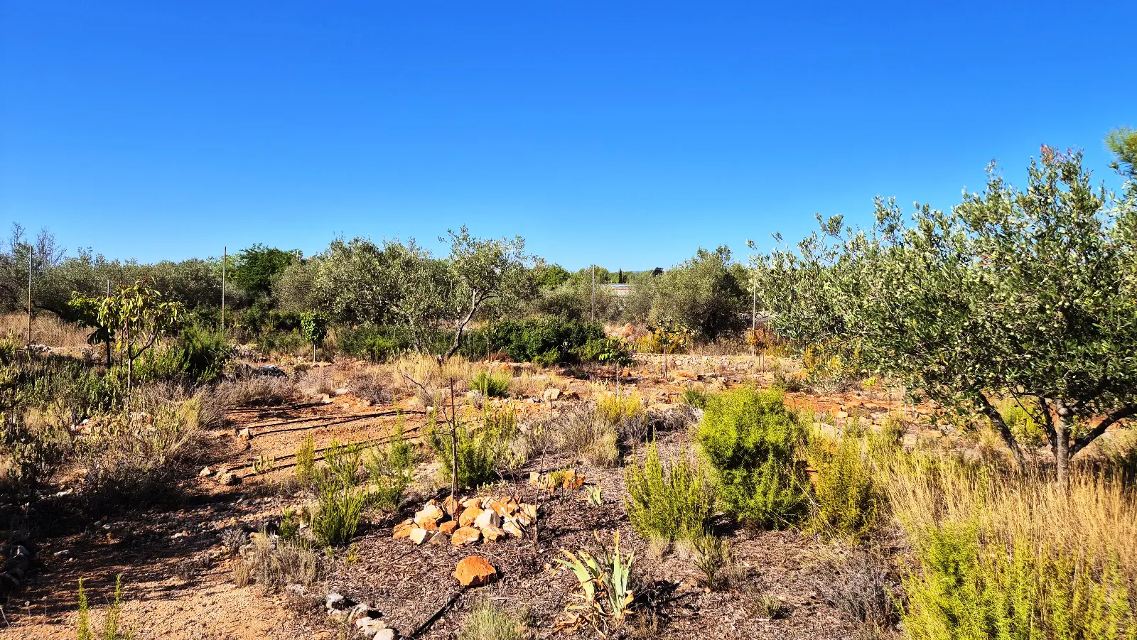 The property is set on a plot measuring 4,666m², with most of it securely fenced. The land features olive groves and a variety of fruit trees, with around 70% of the plantation utilizing drip irrigation systems. The mature trees include a mix of almonds, apples, cherries, apricots, peaches, nectarines, lemons, and oranges. Additionally, there is a dedicated garden area that opens up various landscaping and cultivation possibilities.