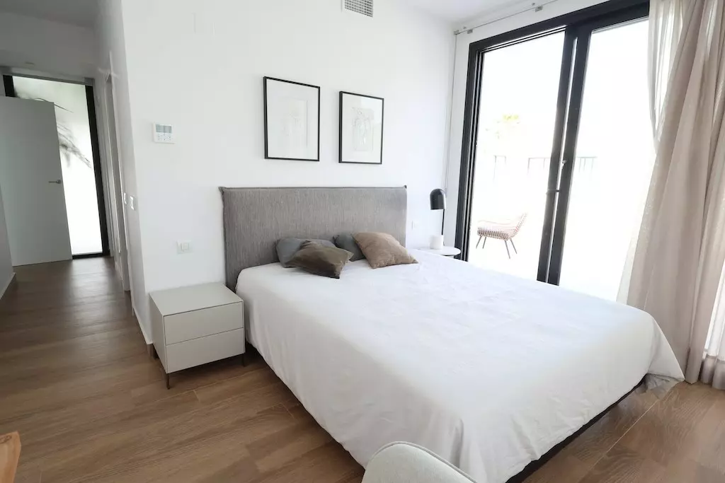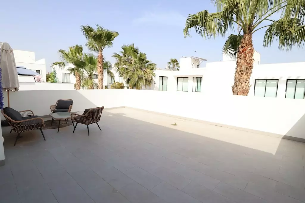 This particular villa features three double bedrooms, each with an en-suite bathroom for added privacy and convenience. One of the bedrooms is conveniently located on the ground floor, making it accessible without needing to navigate stairs.
